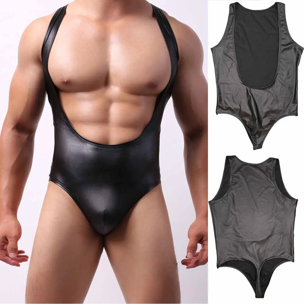 * Описание товара: мужское нижнее белье из искусственной кожи, боди с открытой грудью, черный жилет из лакированной кожи, наряд для ночного клуба