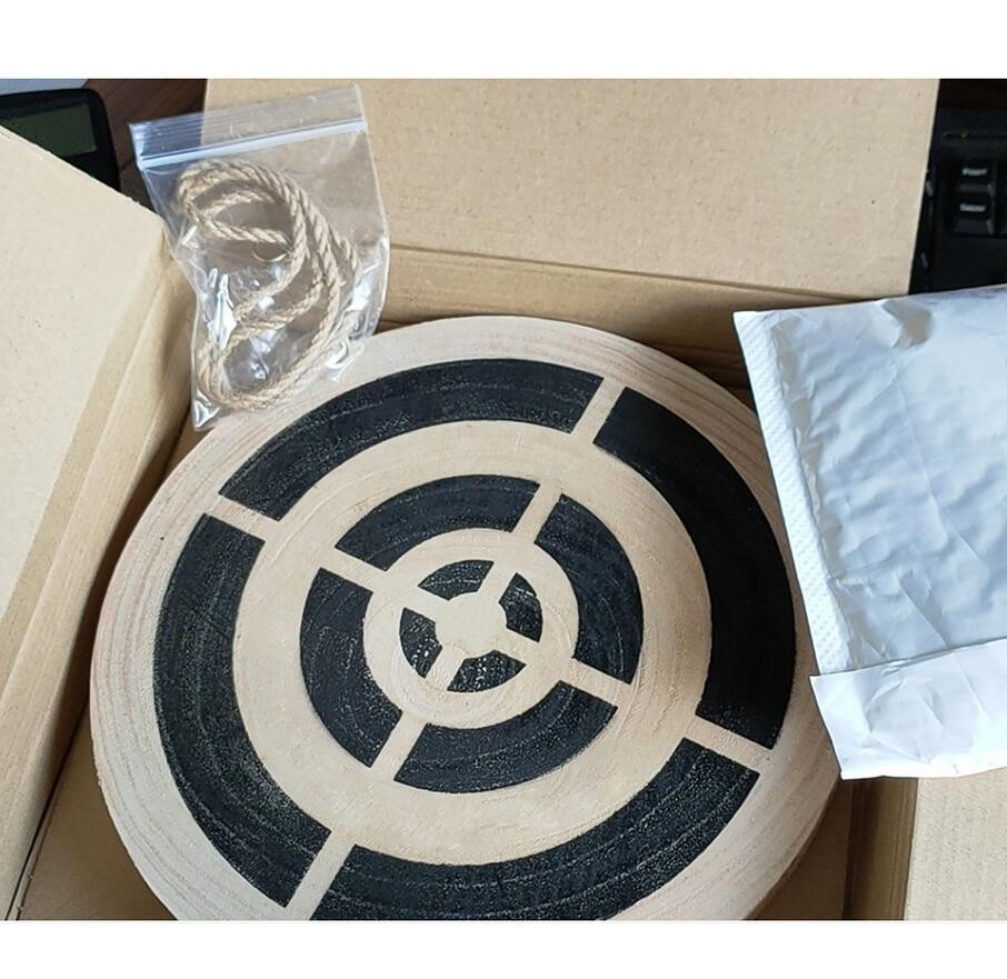 С тремя маленькими осями и толстой целью пня, которую вы можете повесить и бросить.