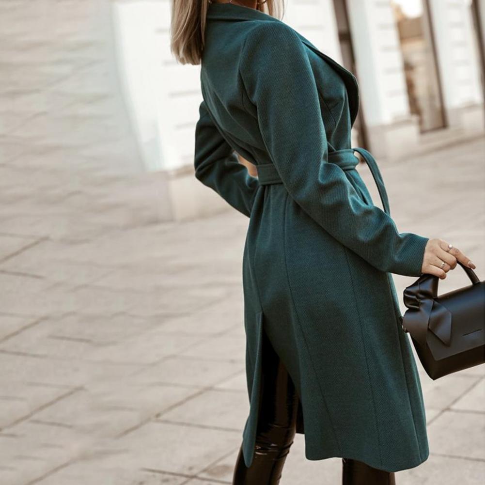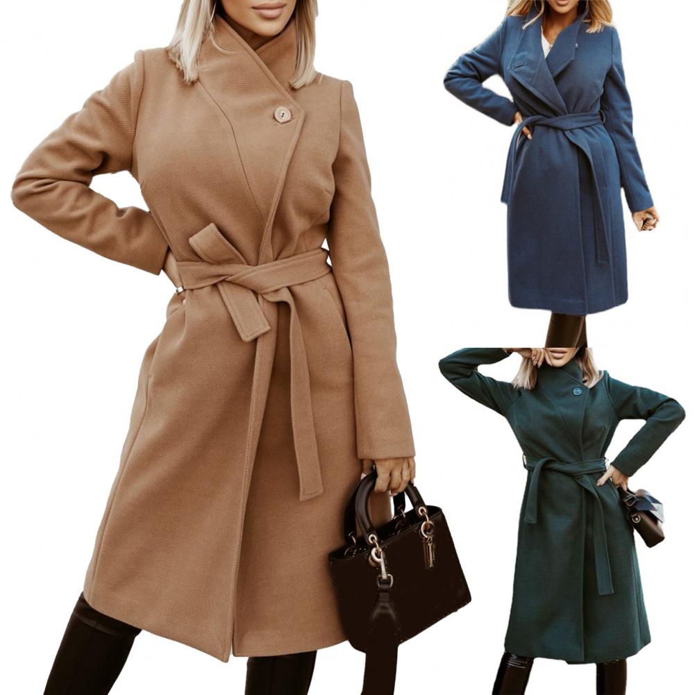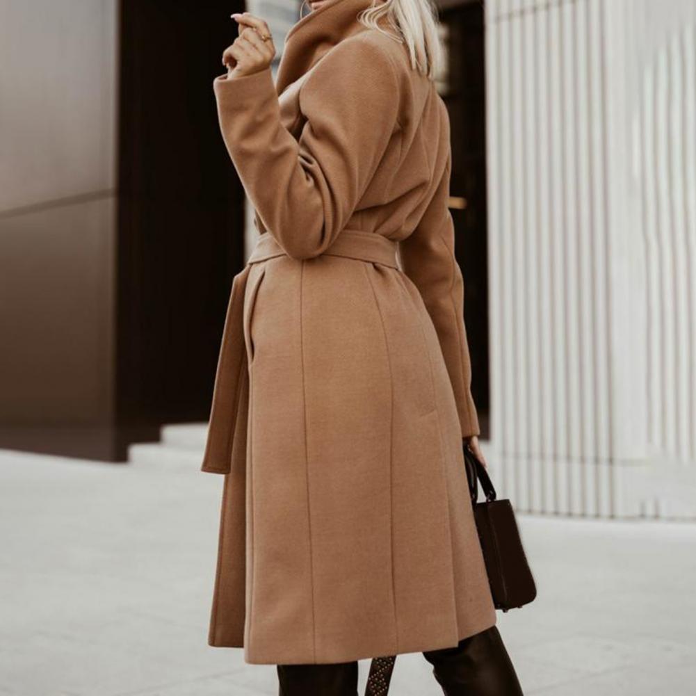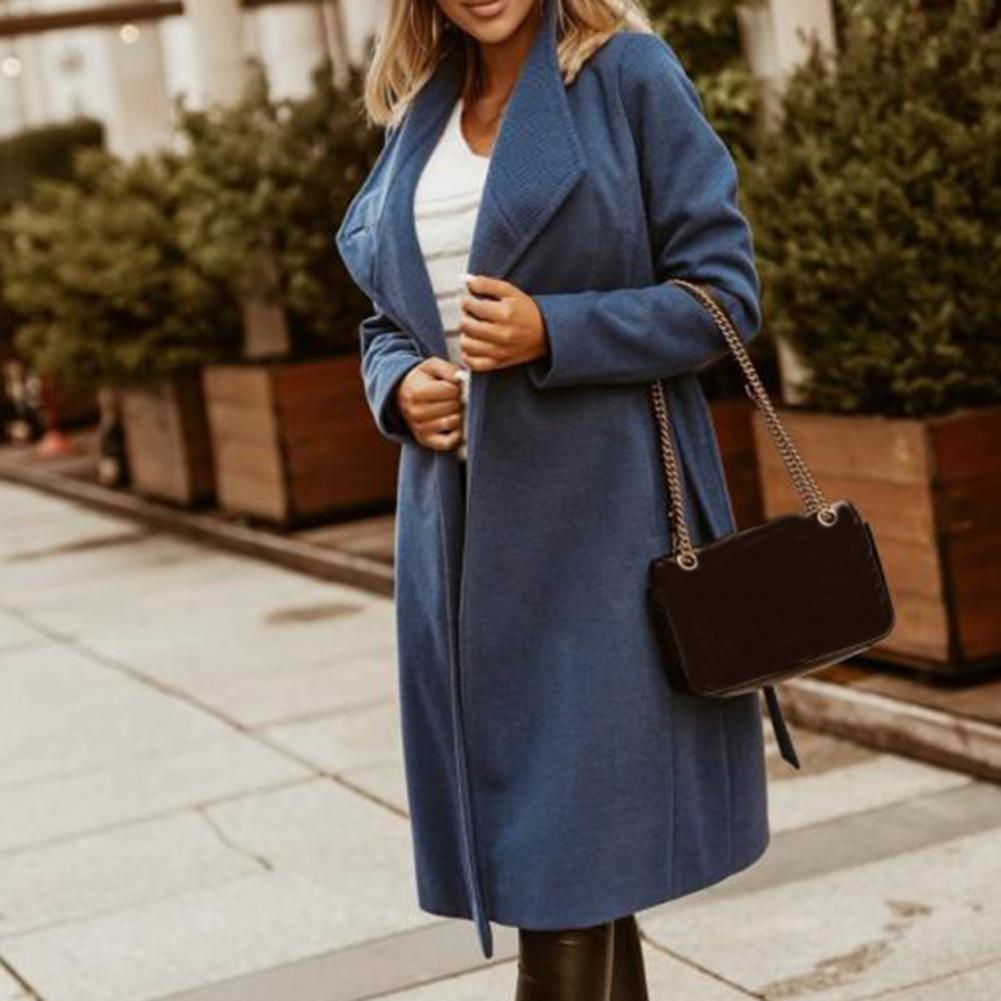 Женское шерстяное пальто с отложным воротником, устойчивый к разрыву кардиган длиной до колена, зимнее пальто для повседневной жизни