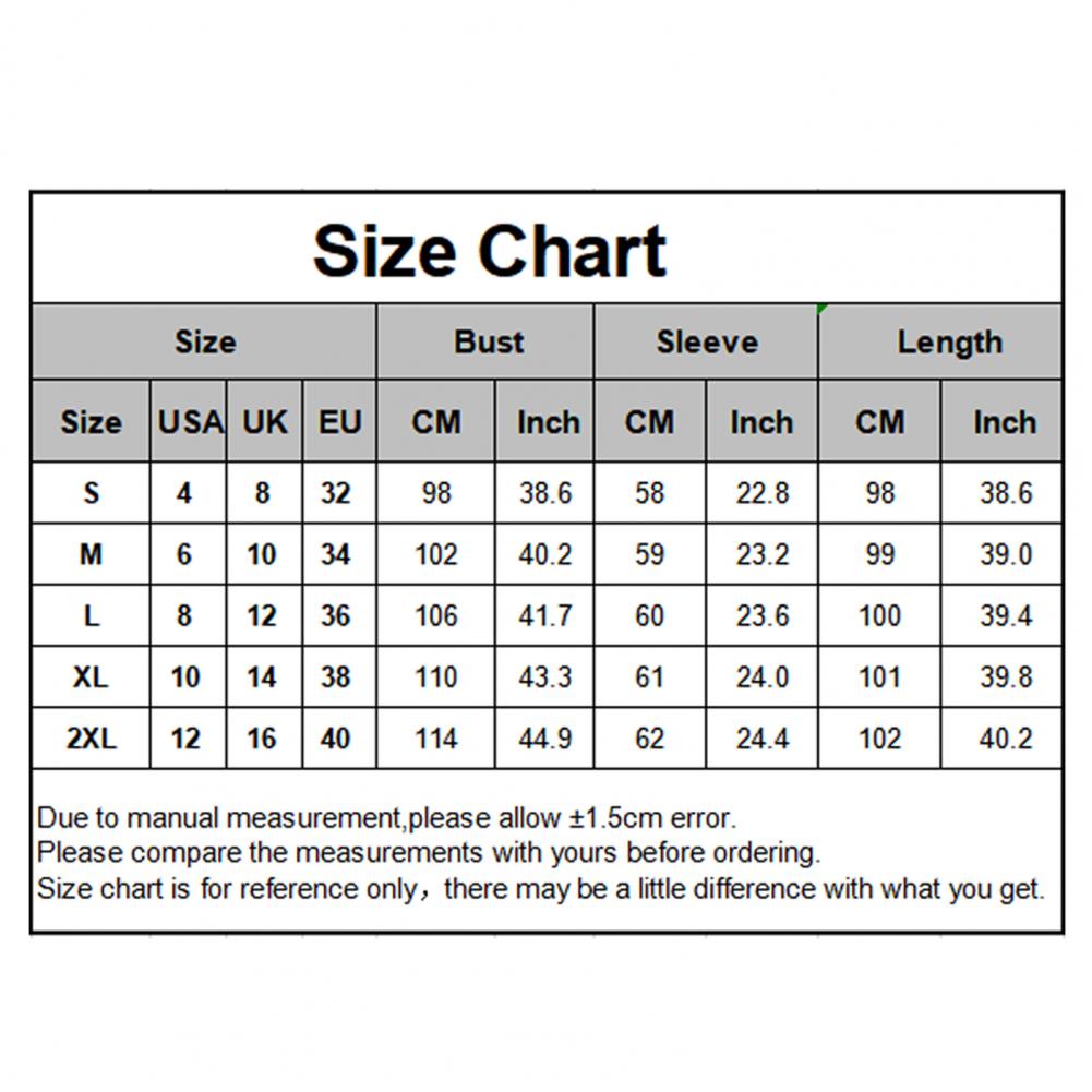 Размер: 2XL, обхват груди: 114 см/44,9 дюйма, рукав: 62 см/24,4 дюйма, длина: 102 см/40,2 дюйма (прибл.)