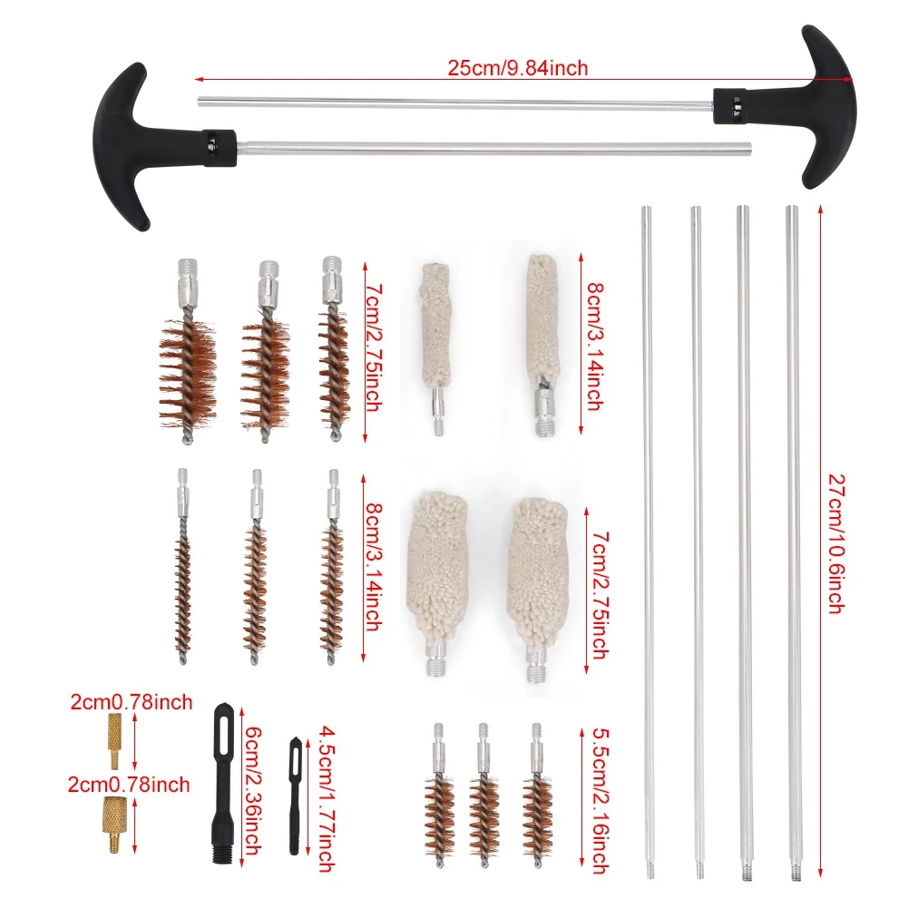 Этот комплексный комплект был разработан для удовлетворения всех ваших потребностей в очистке пистолета. Огнезащитное оружие-это большая инвестиция, отличный аксессуар для него. Правильно очищайте и поддерживайте свое оружие, сохраняйте его ценность, а также производительность. В комплект входит 28 чистящих инструментов, подходящих для большинства видов винтовок, удовлетворяющих все ваши потребности. Коробка изготовлена из квалифицированный алюминий, легкий и прочный в использовании.Характеристики: