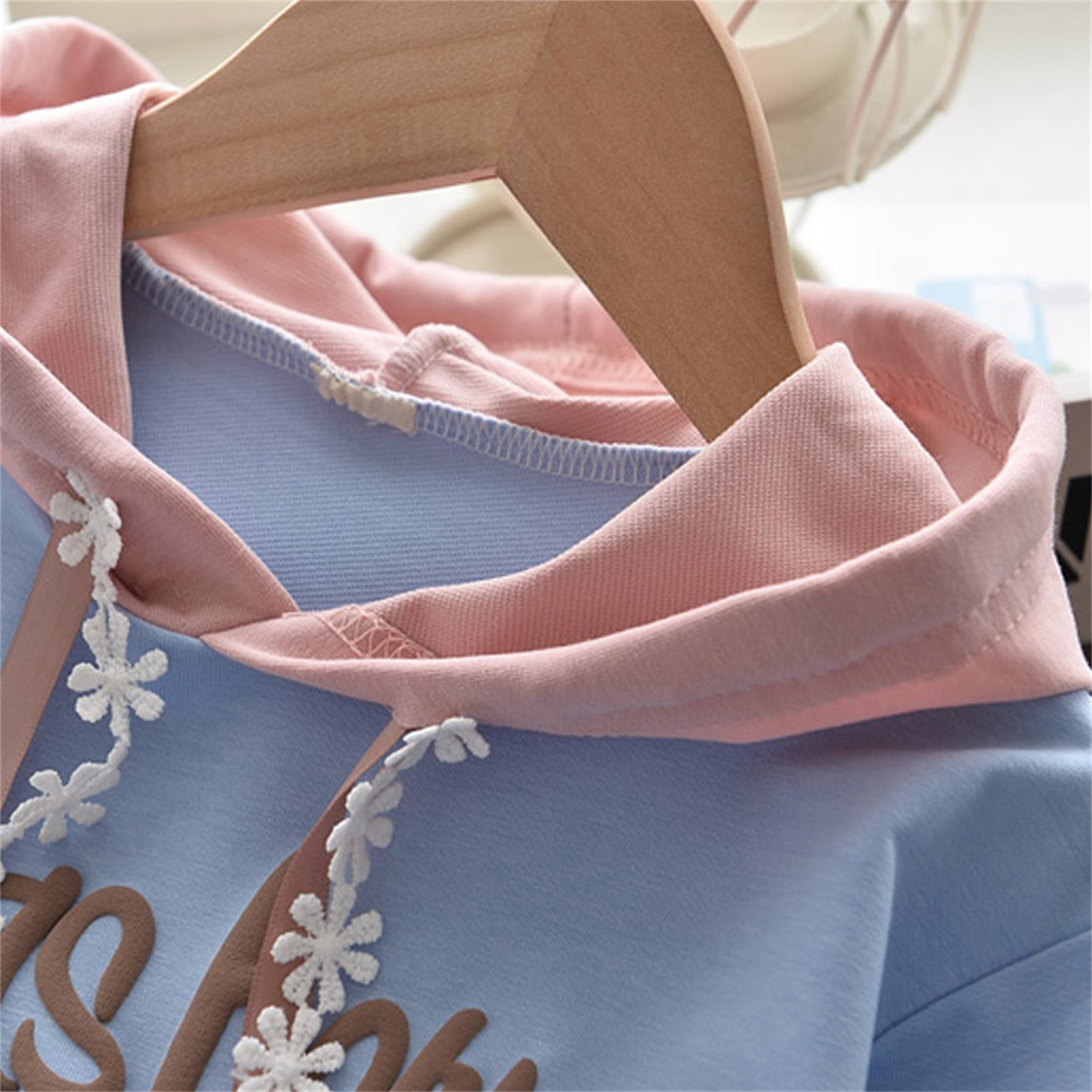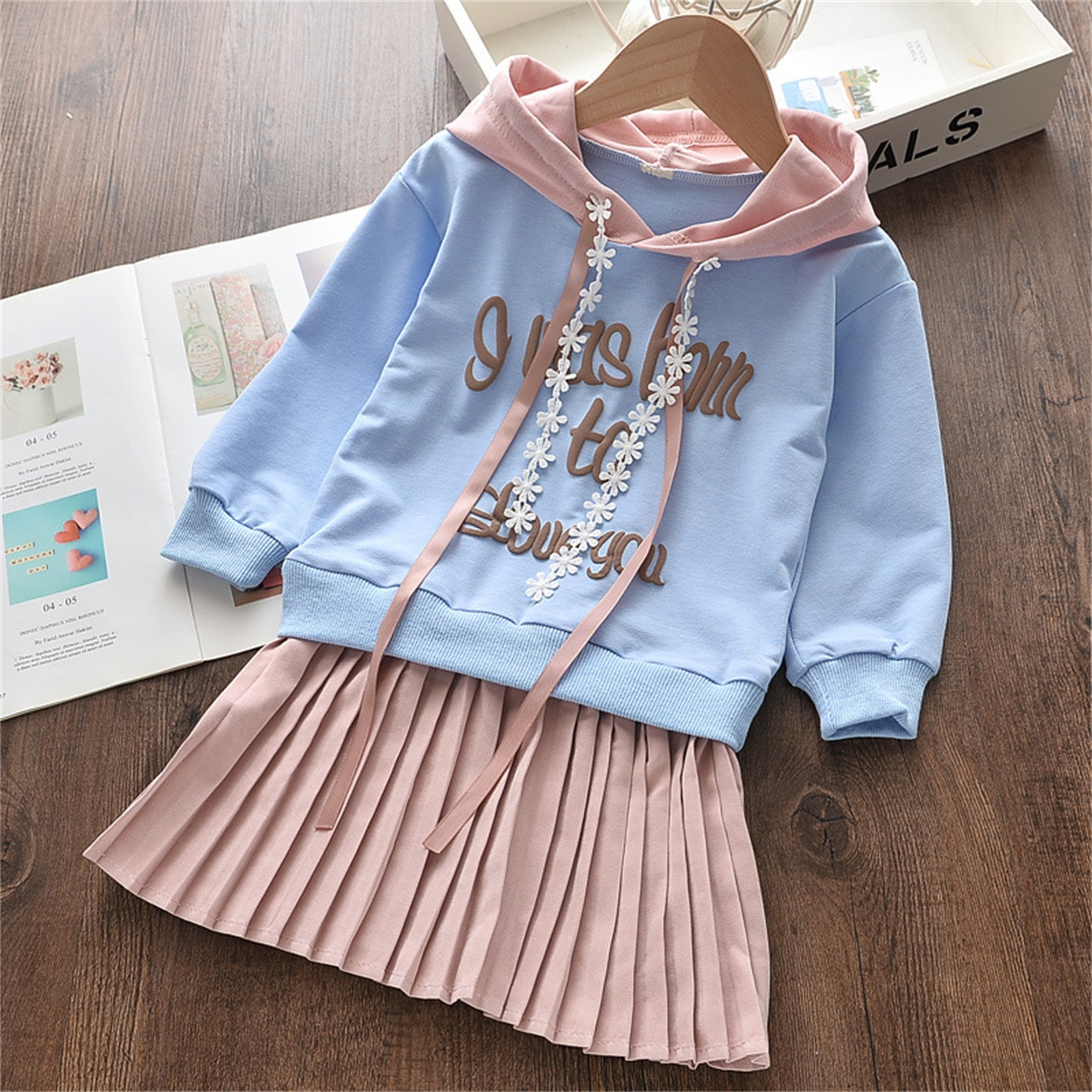Пуловер с капюшоном и длинными рукавами для маленьких девочек; Толстовка с буквенным принтом; Плиссированная юбка; Толстовка с капюшоном; Имитация двух предметов