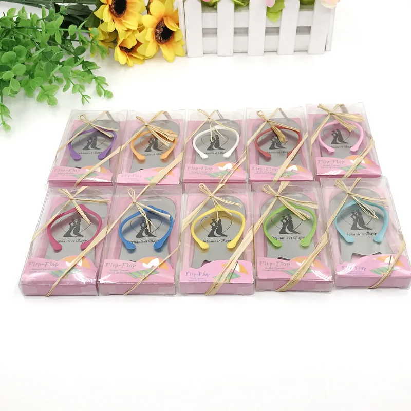 90 шт. однотонные сандалии открывалка для пива с индивидуальным принтом логотипа Персонализация Свадебные сувениры красочные стринги флип-флоп открывалки для бутылок