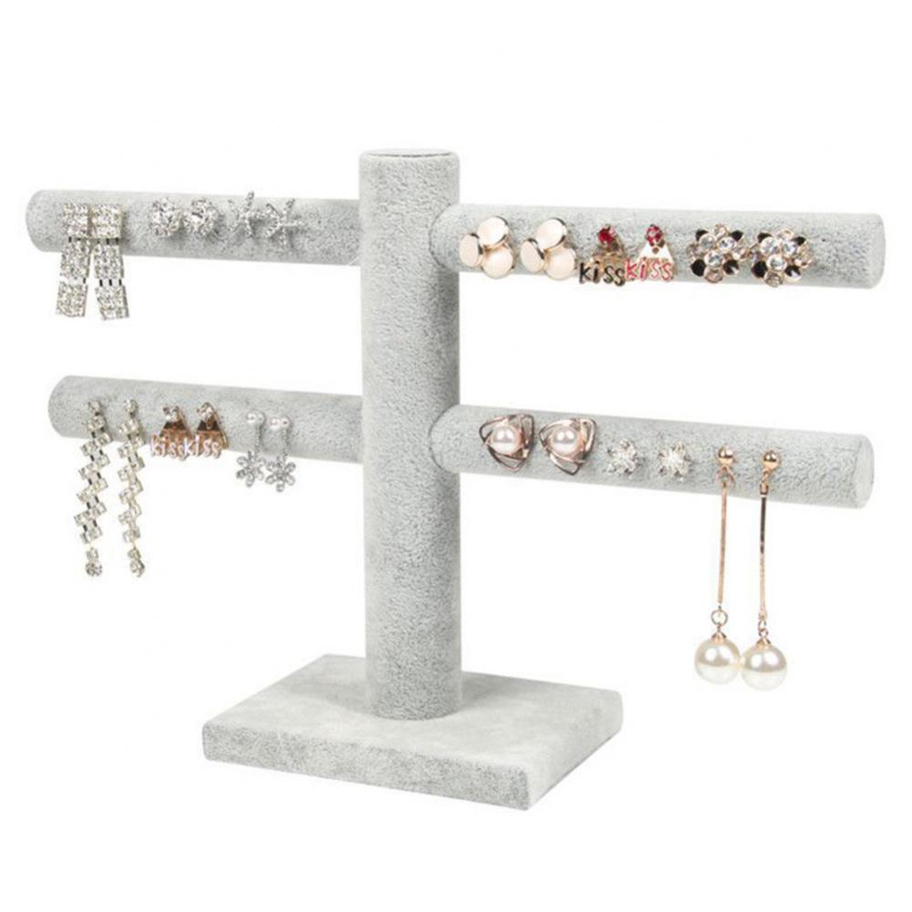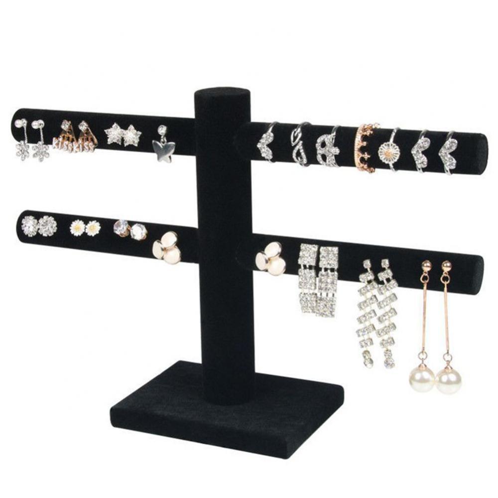 2 яруса Т-бар бархат ювелирные изделия стенд серьги ожерелья Органайзер Дисплей Держатель
