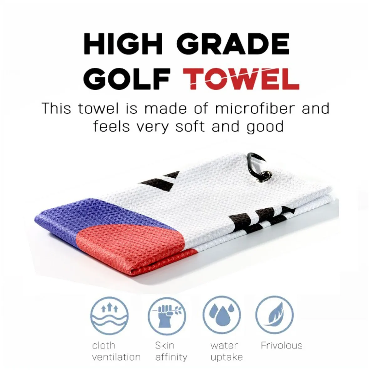 Корейский флаг, полотенце для гольфа, быстросохнущее хлопковое пляжное полотенце, мягкое дышащее спортивное полотенце, крепкий карабин