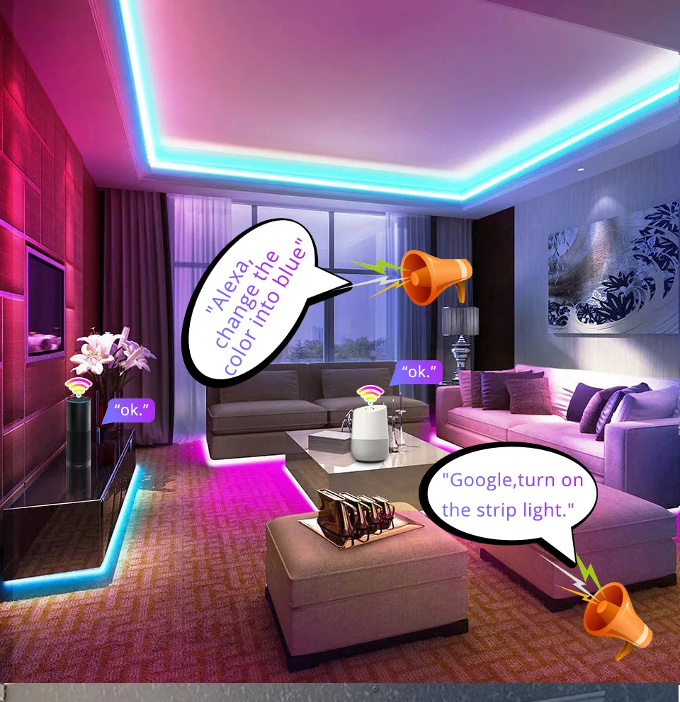 SMD 5050 умная Светодиодная лента светильник 5 м RBG P65 Wi-Fi Управление музыкальной синхронизации прокладки СИД светильник ТВ Подсветка светильник полосы светильник для смартфонов смарт-app Управление