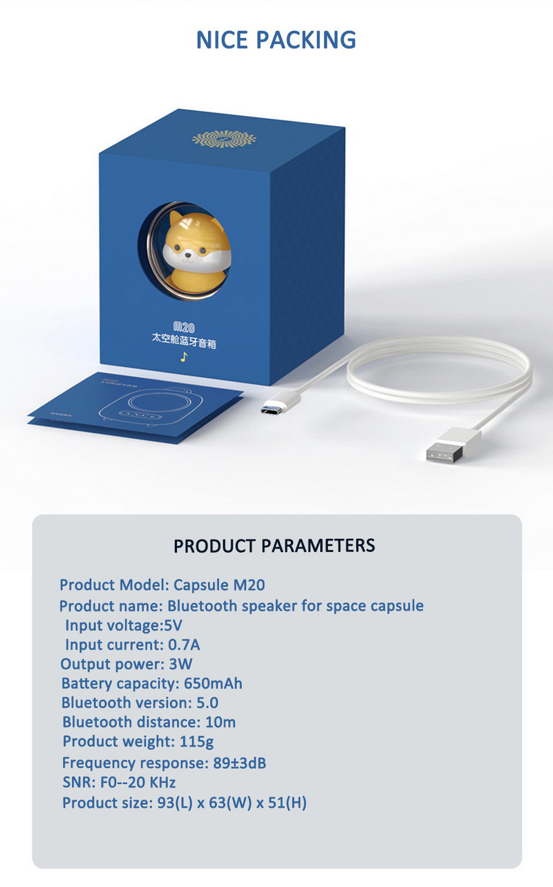 1:New Space Capsule Bluetooth Speaker Mini Wireless Audio Cartoon Cute Pet Large Volume Portable Gift Small Speaker