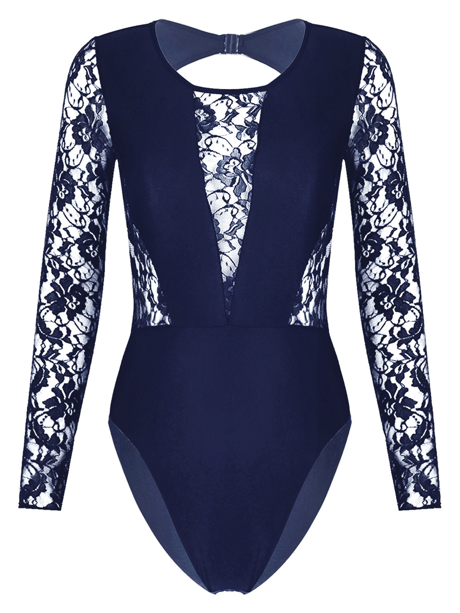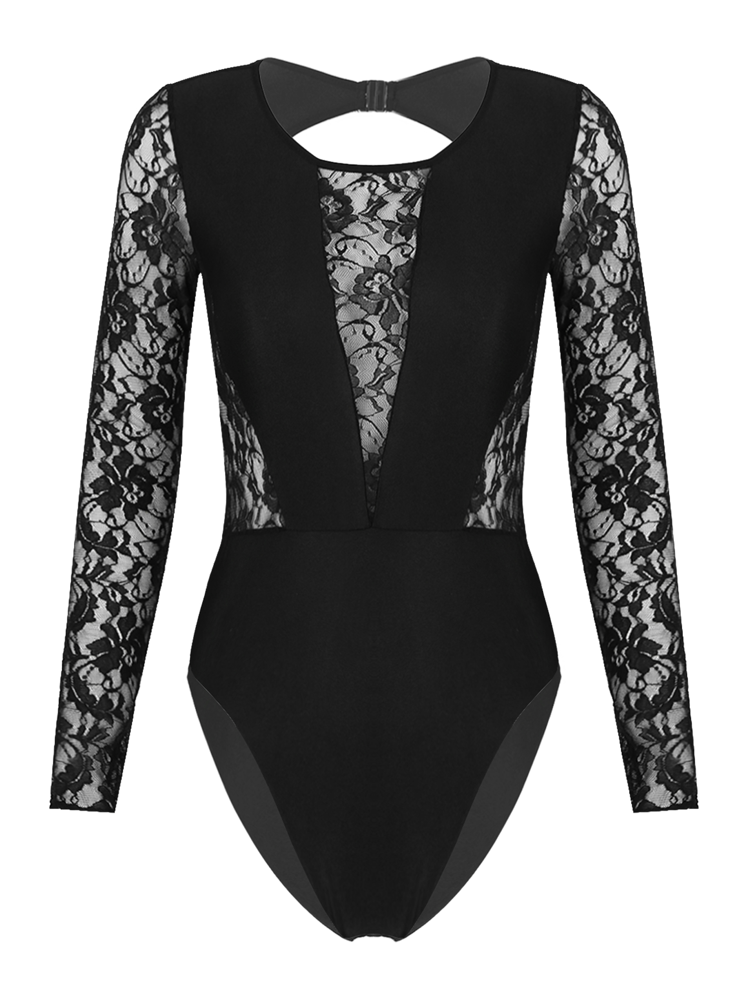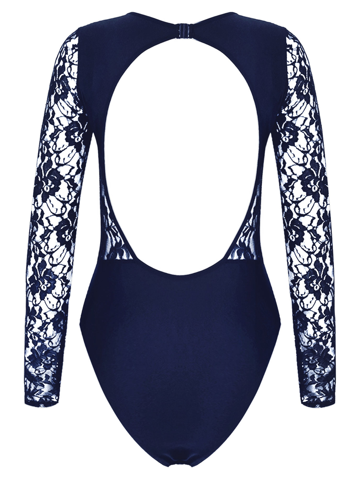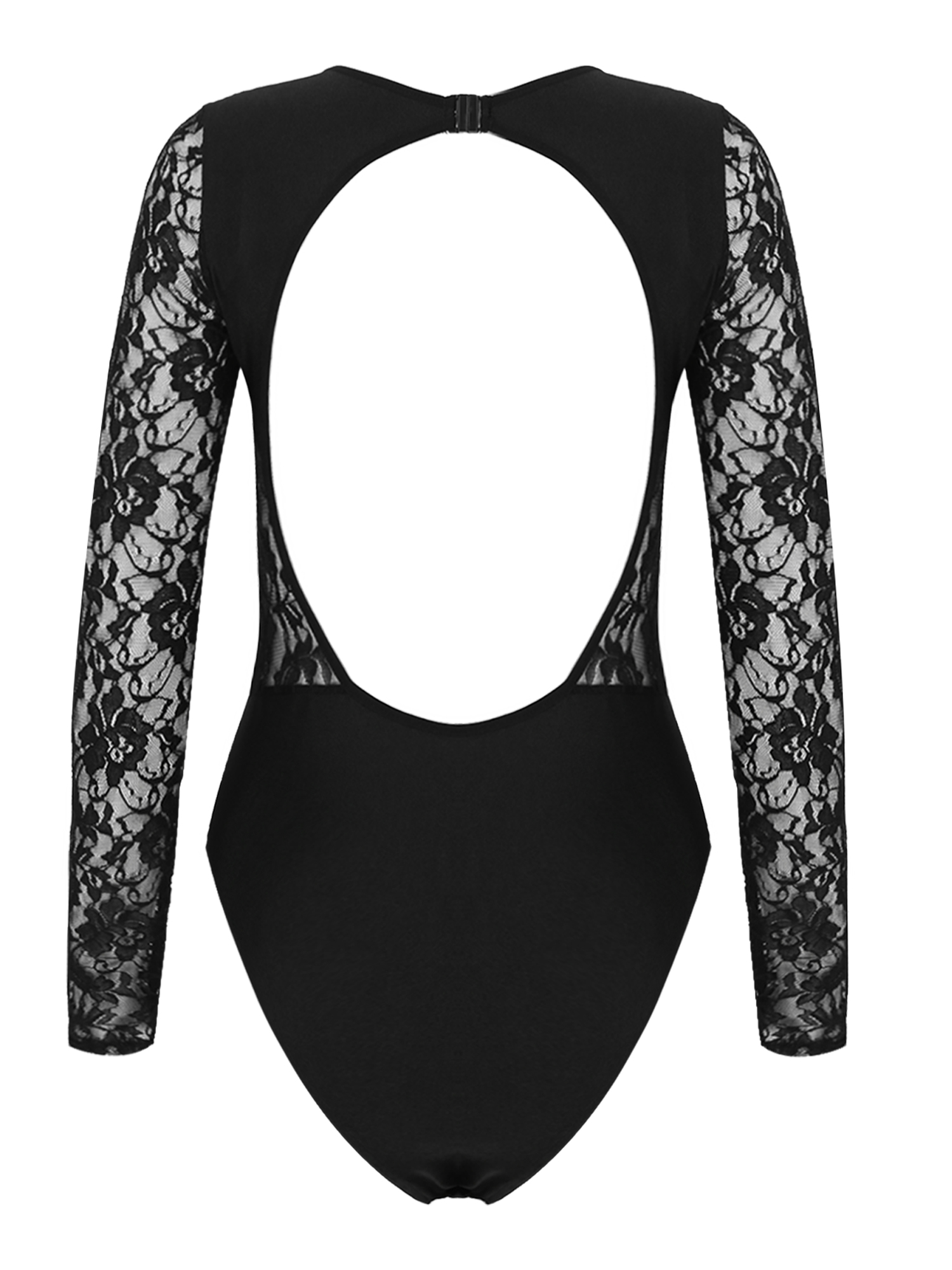 Женское кружевное танцевальное трико с длинным рукавом и открытой спиной.