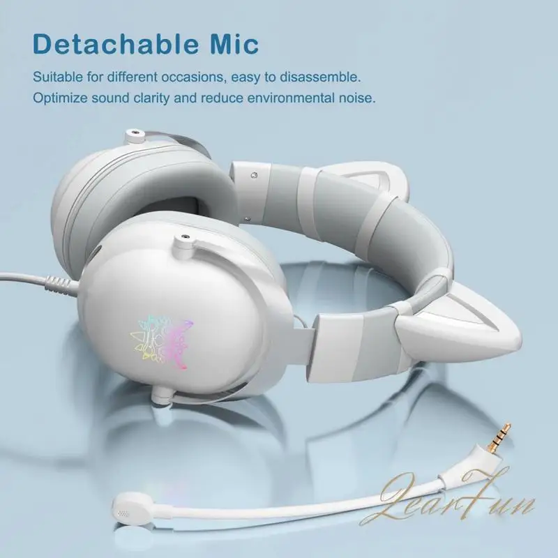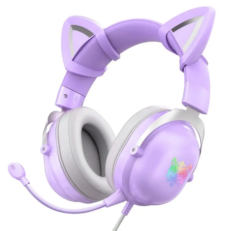 X11 съемный милый кот уши над головой Проводная гарнитура наушники с микрофоном шумоподавление малыш девочка RGB светильник стерео музыка