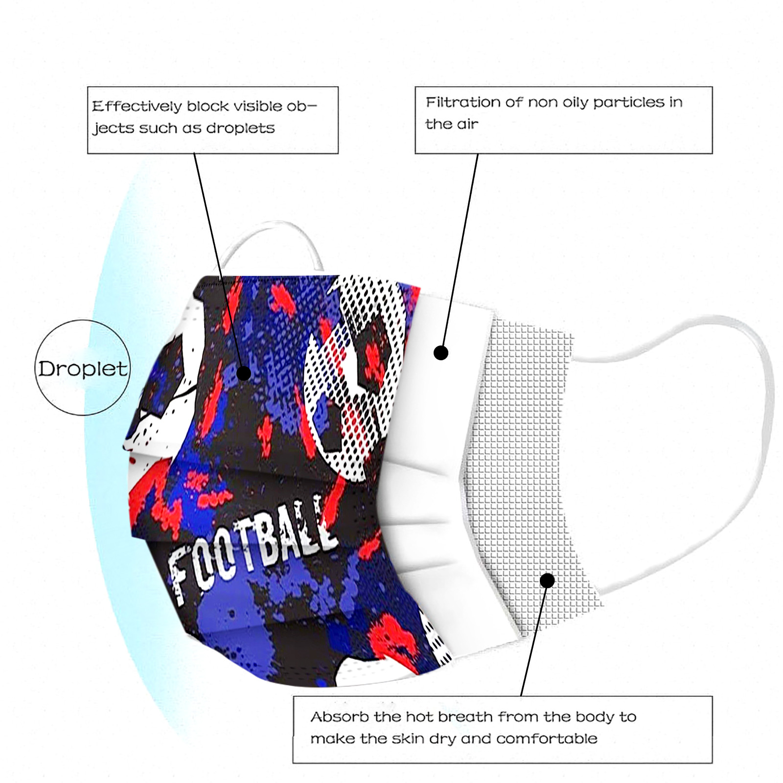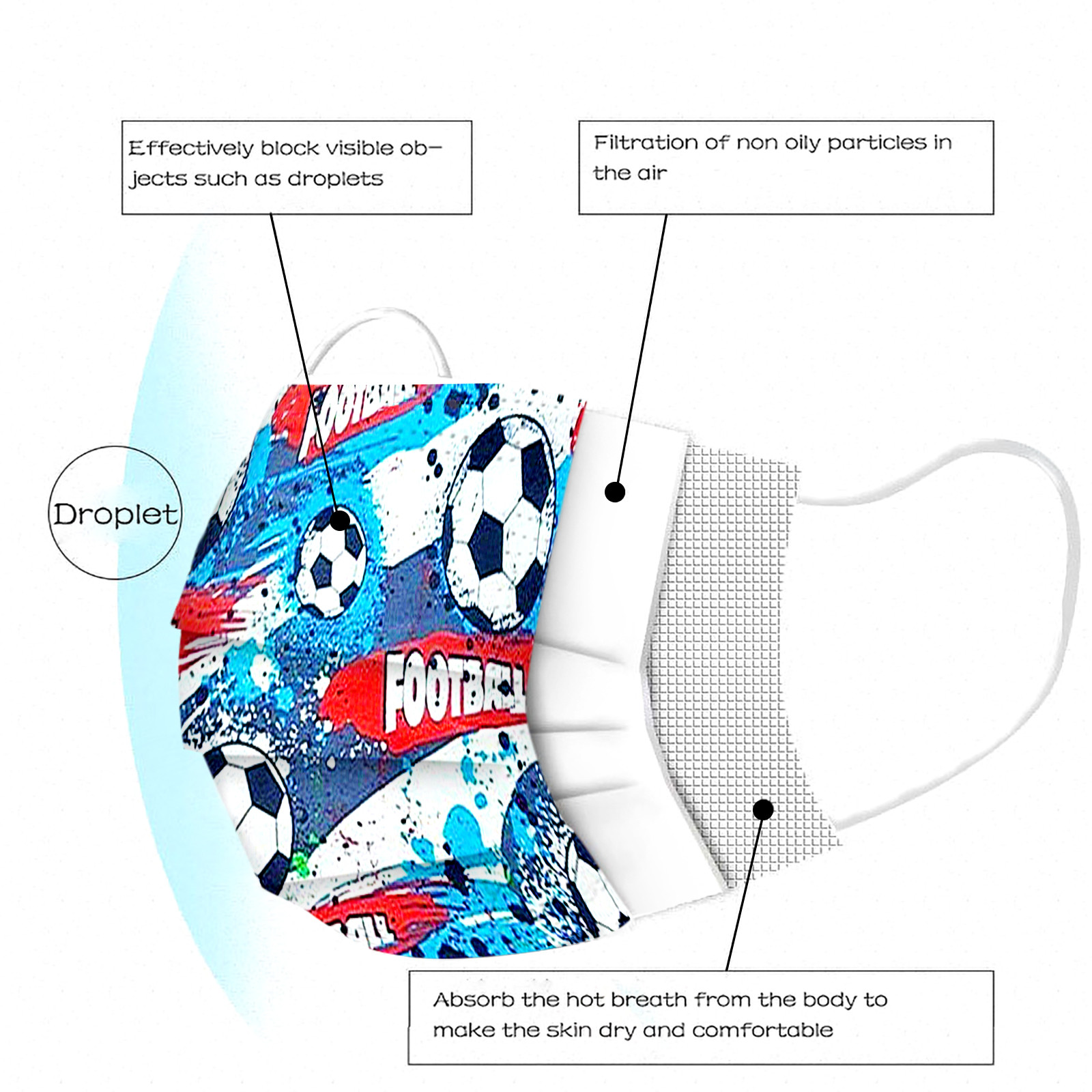 50pc Football Disposable Mask For Kid Guarda Mascarillas Mascarilla Boca Halloween Cosplay Masque Mascarilla Navidad Mondmasker