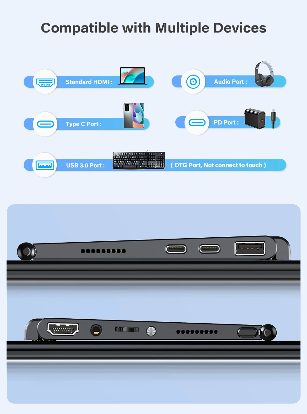 Для работы: Мобильный дисплей удобен как вспомогательный дисплей для смартфонов и ноутбуков, и он привлекателен, чтобы иметь возможность построить двойной монитор в любом месте.