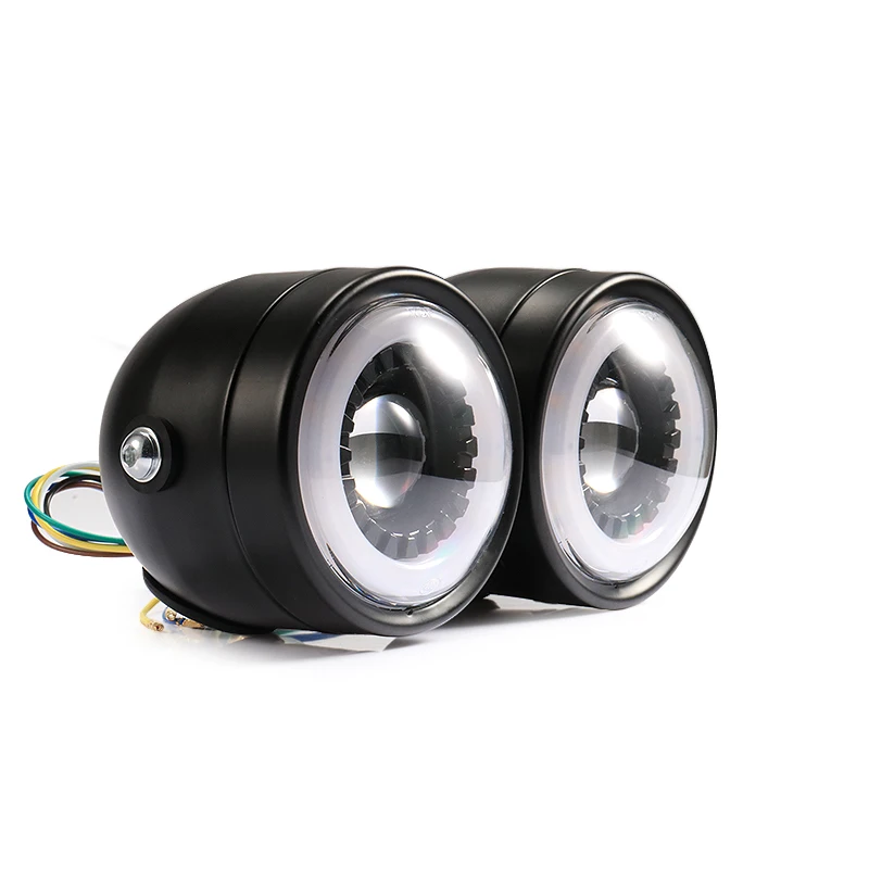 DC 12V светодиодный двойной налобный фонарь для мотоцикла, скутер, двойной головной светильник, ретро, черный светодиодный передний светильник для кафе, Racer Honda GS CG125 GN