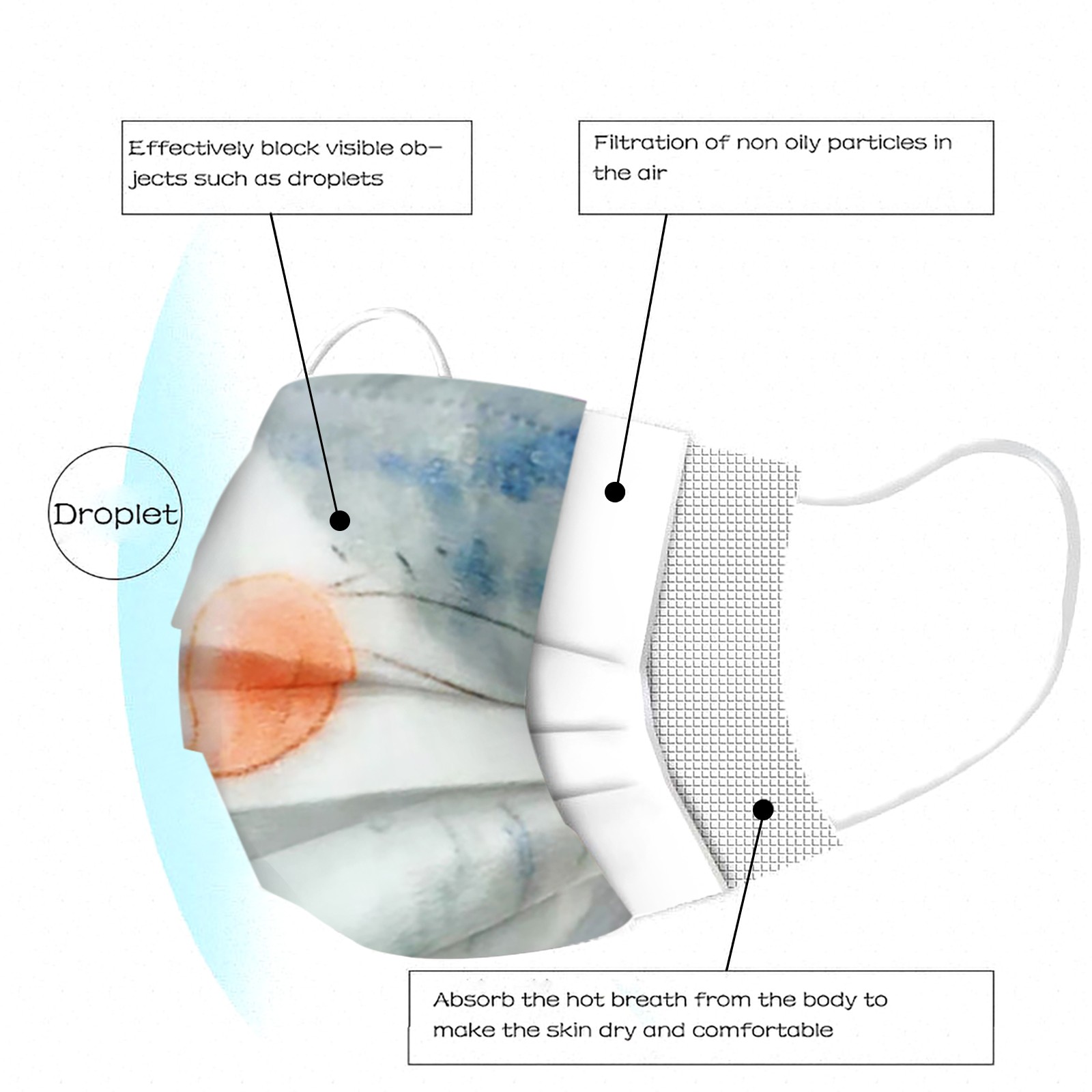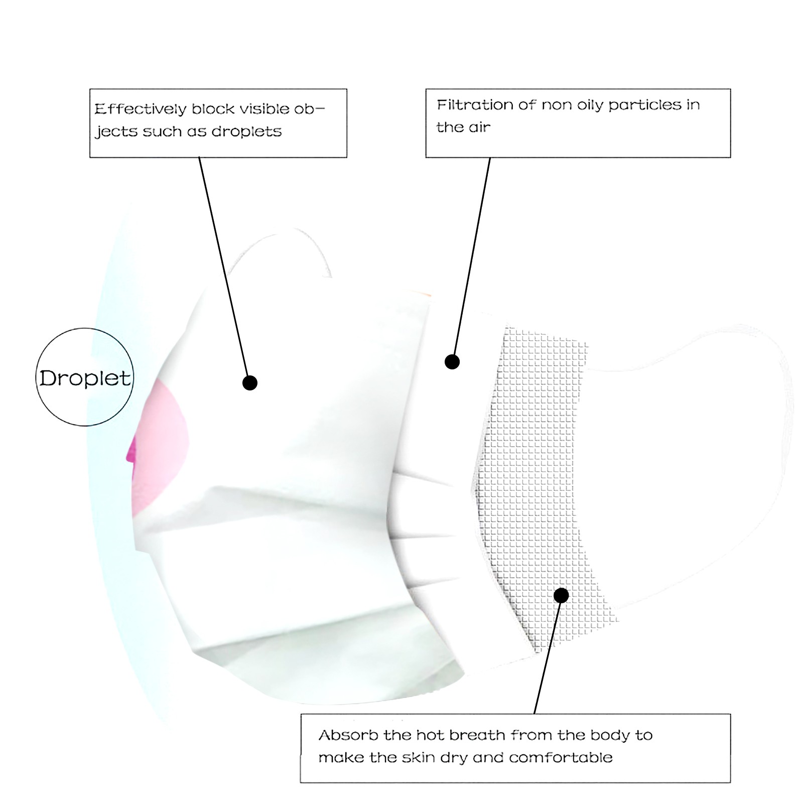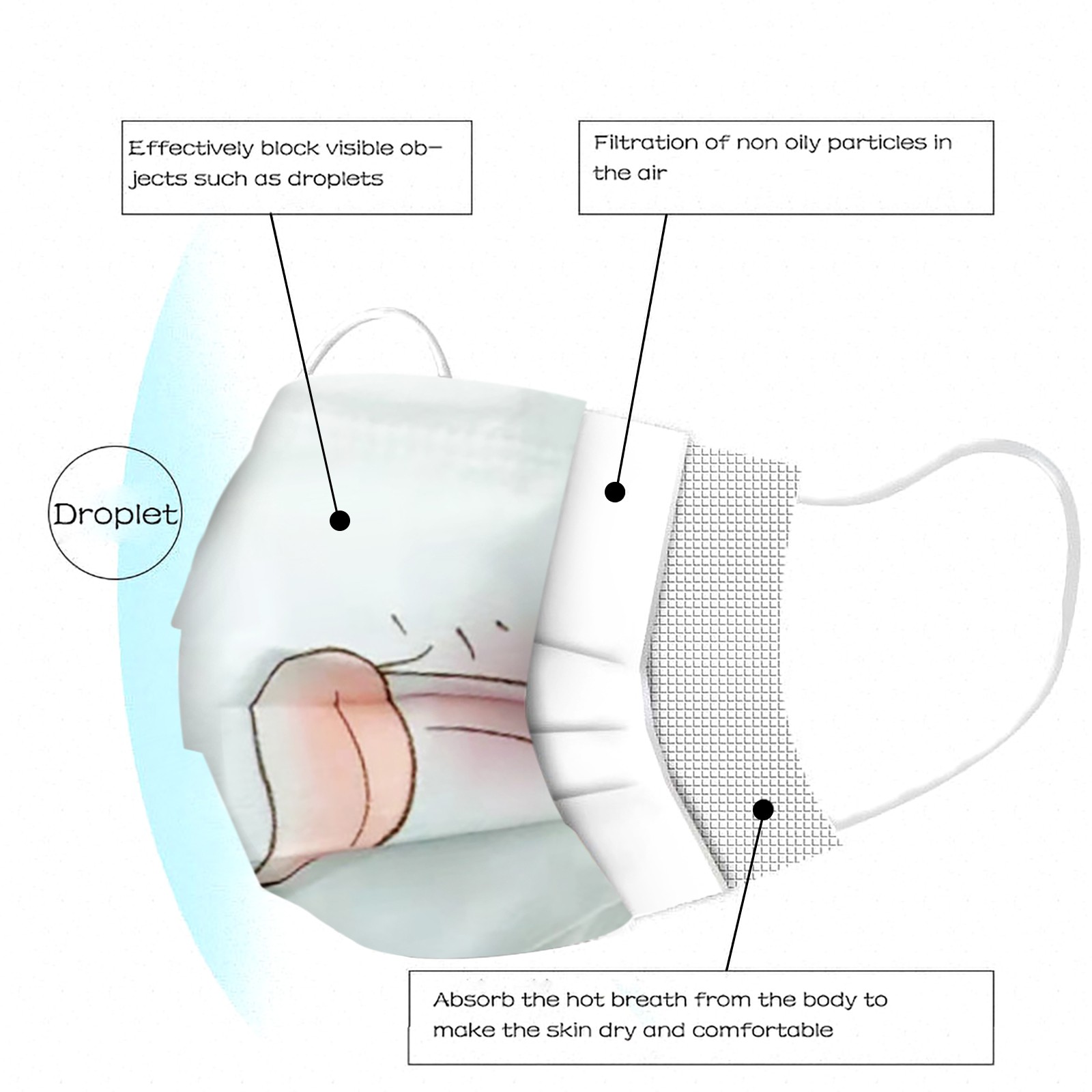 Disposable masks are made of non-woven materials, with a special three-layer non-woven fabric design, multiple layers of filtering, and all-round fit to effectively isolate pollution.