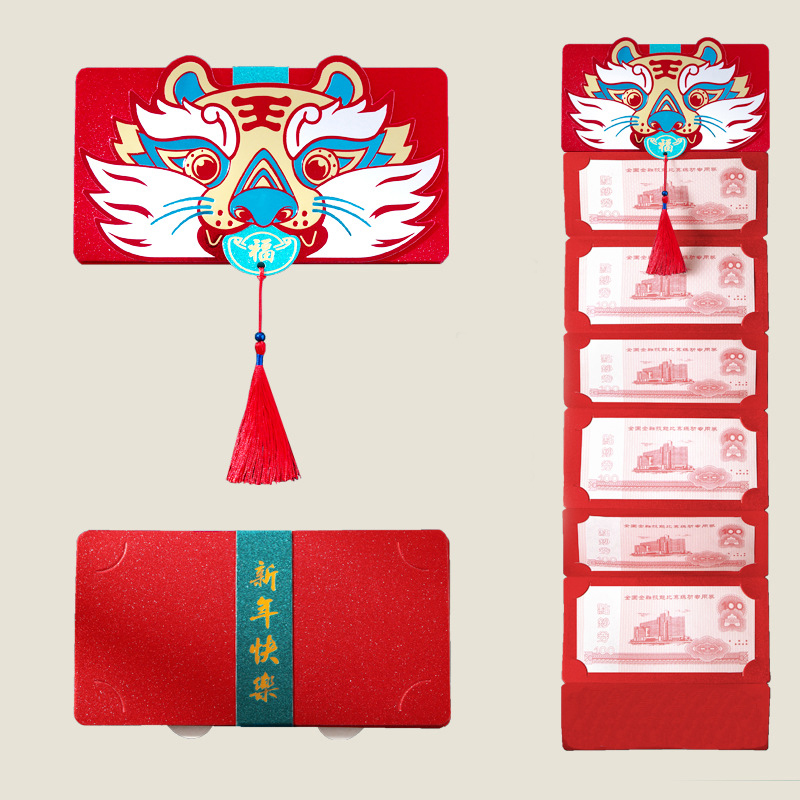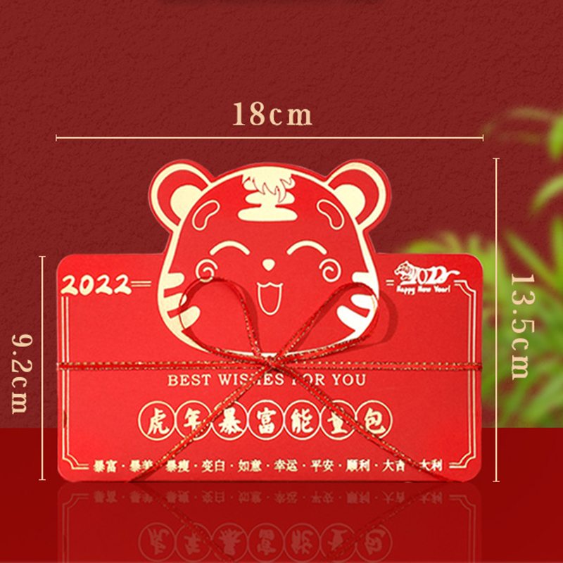 2. Благоприятные узоры: Эти 2022 китайские красные карманы напечатаны с различными узорами китайских тигров и китайских благ. Сочетание золотых символов и красных фонов наполнено дыханием весеннего фестиваля.