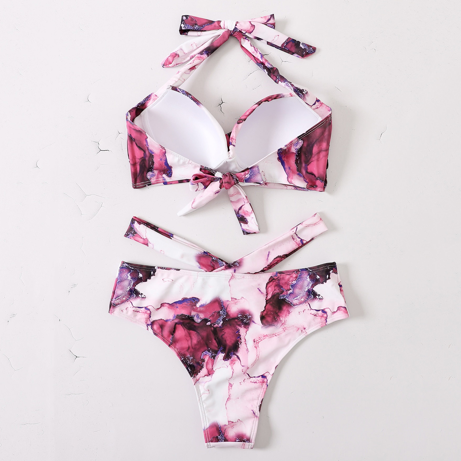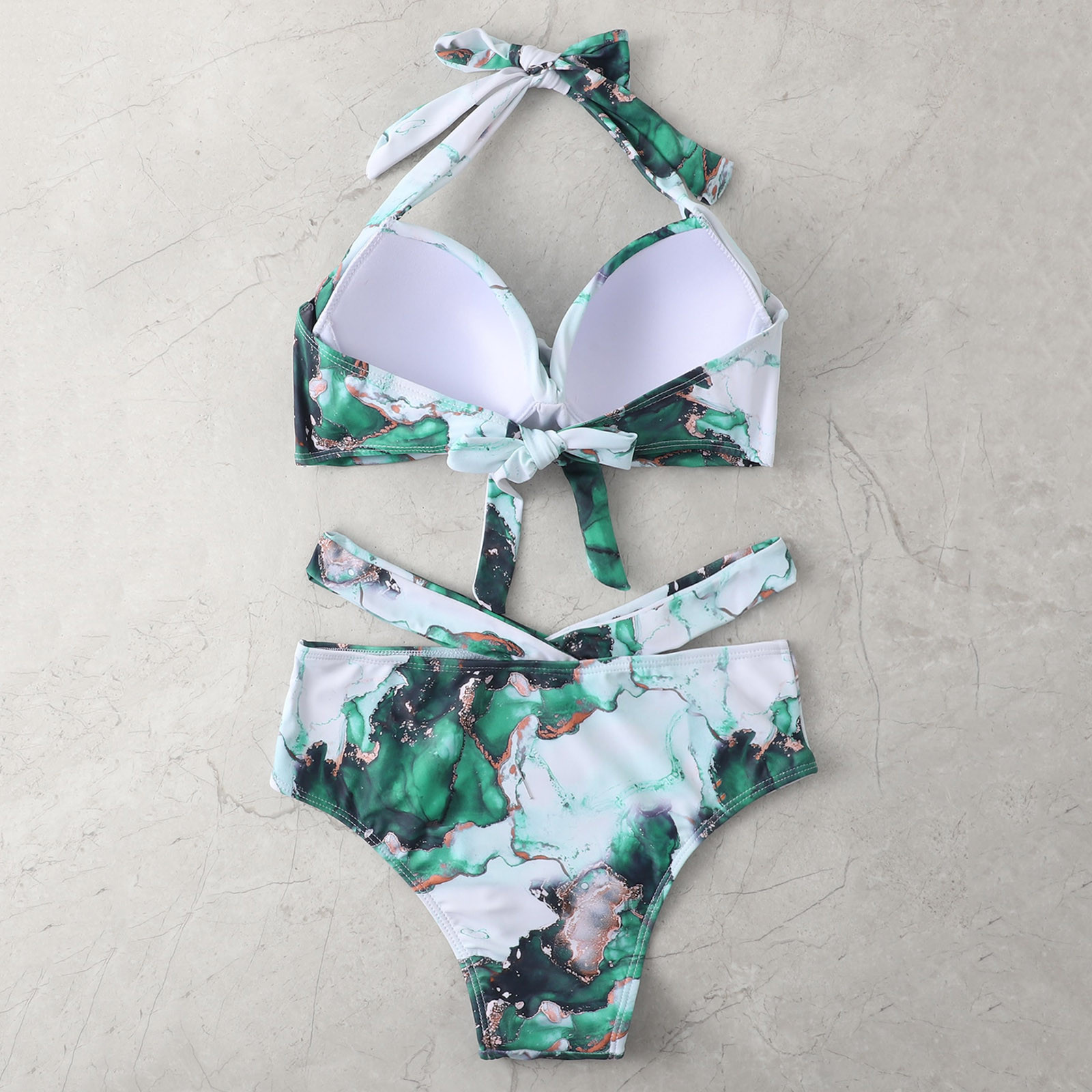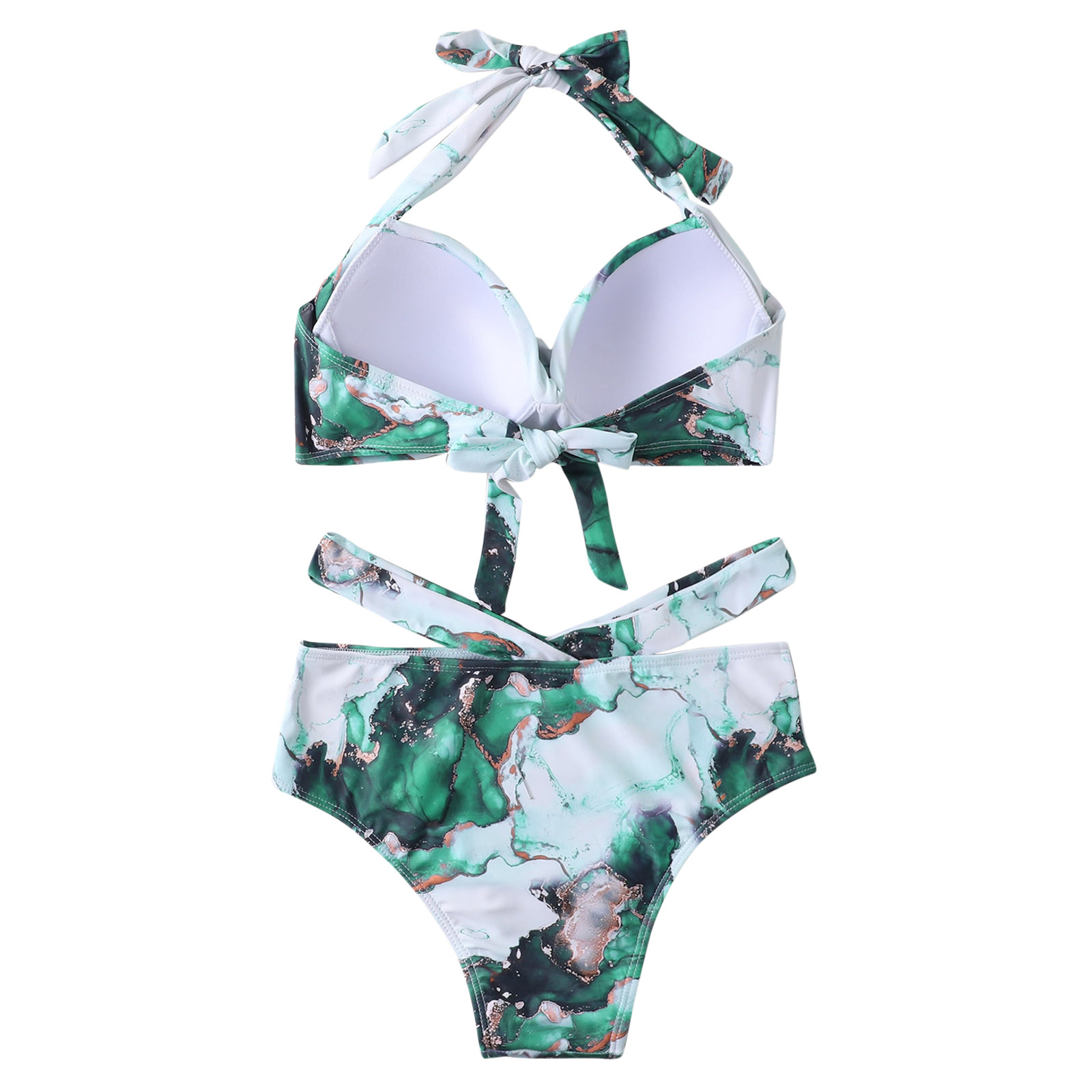 Верх: Широкие бретельки и без съемной подкладки, бюстгальтер пуш-ап, Классическая простота спереди, сексуальный v-образный вырез, регулируемые лямки, Встроенная Подкладка, женские комплекты бикини с завязками на спине и пуловером.