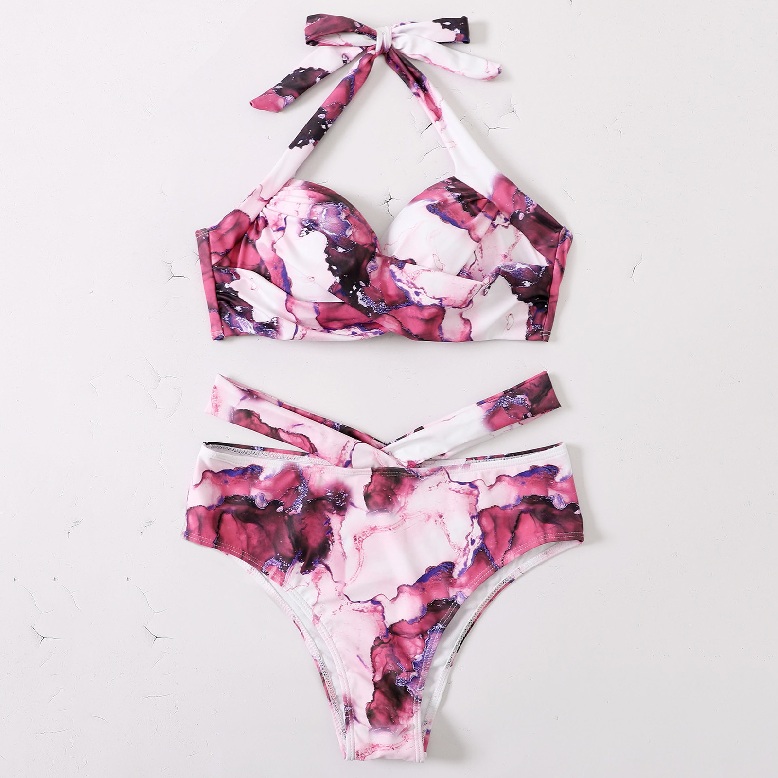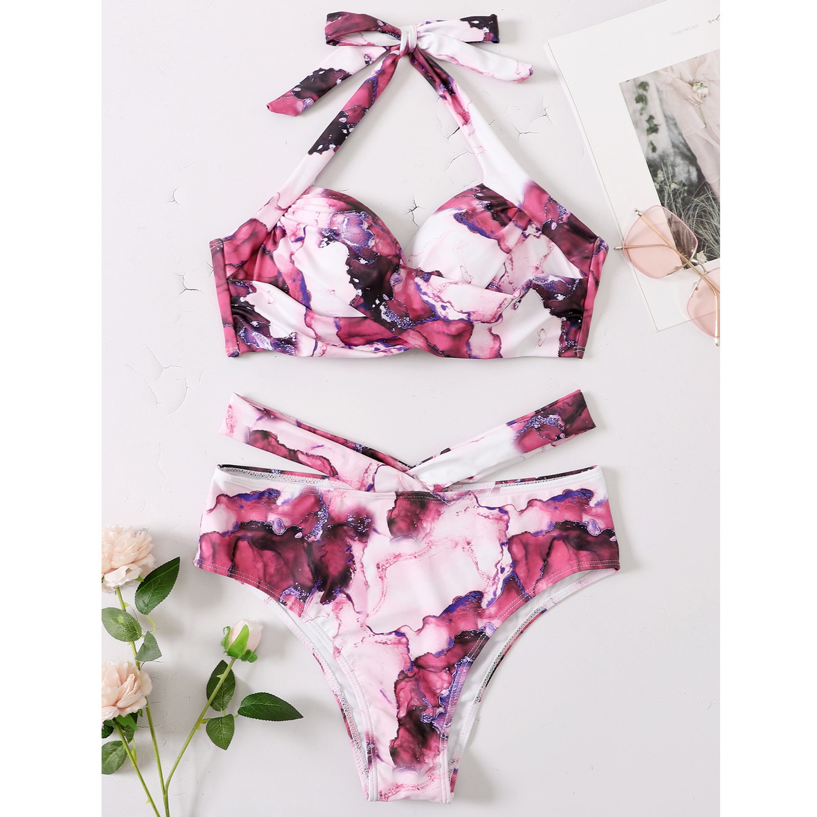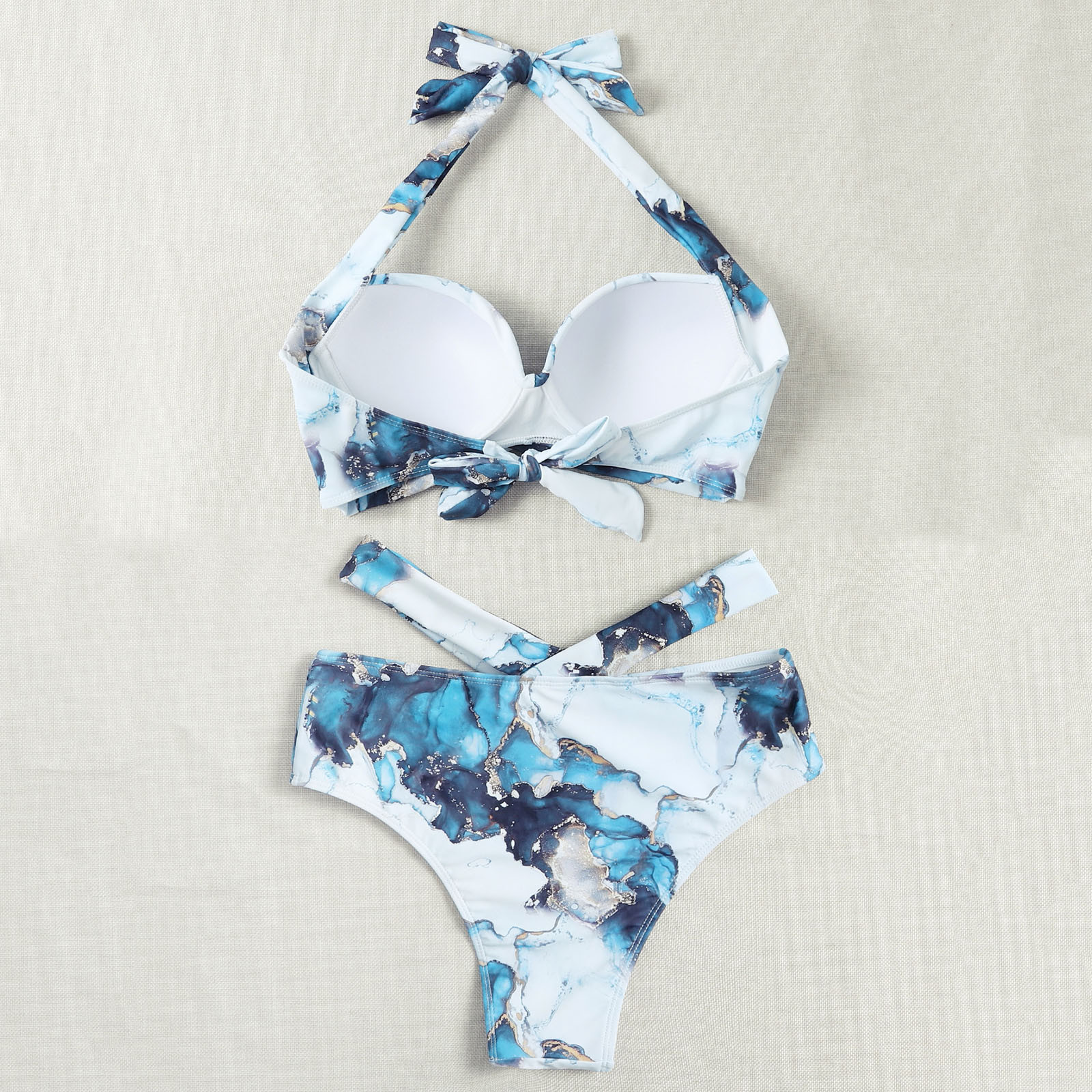 Верх: Широкие бретельки и без съемной подкладки, бюстгальтер пуш-ап, Классическая простота спереди, сексуальный v-образный вырез, регулируемые лямки, Встроенная Подкладка, женские комплекты бикини с завязками на спине и пуловером.