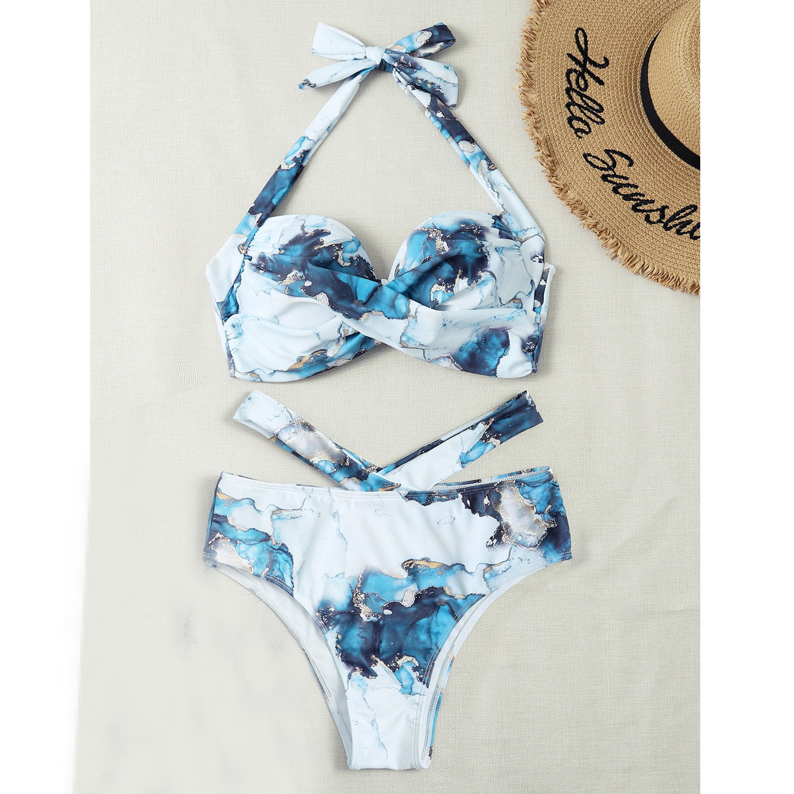 Низ: Винтажный чехол с высокой посадкой на животе, боковое управление животиком, скромное покрытие, лестное винтажное бикини с принтом.