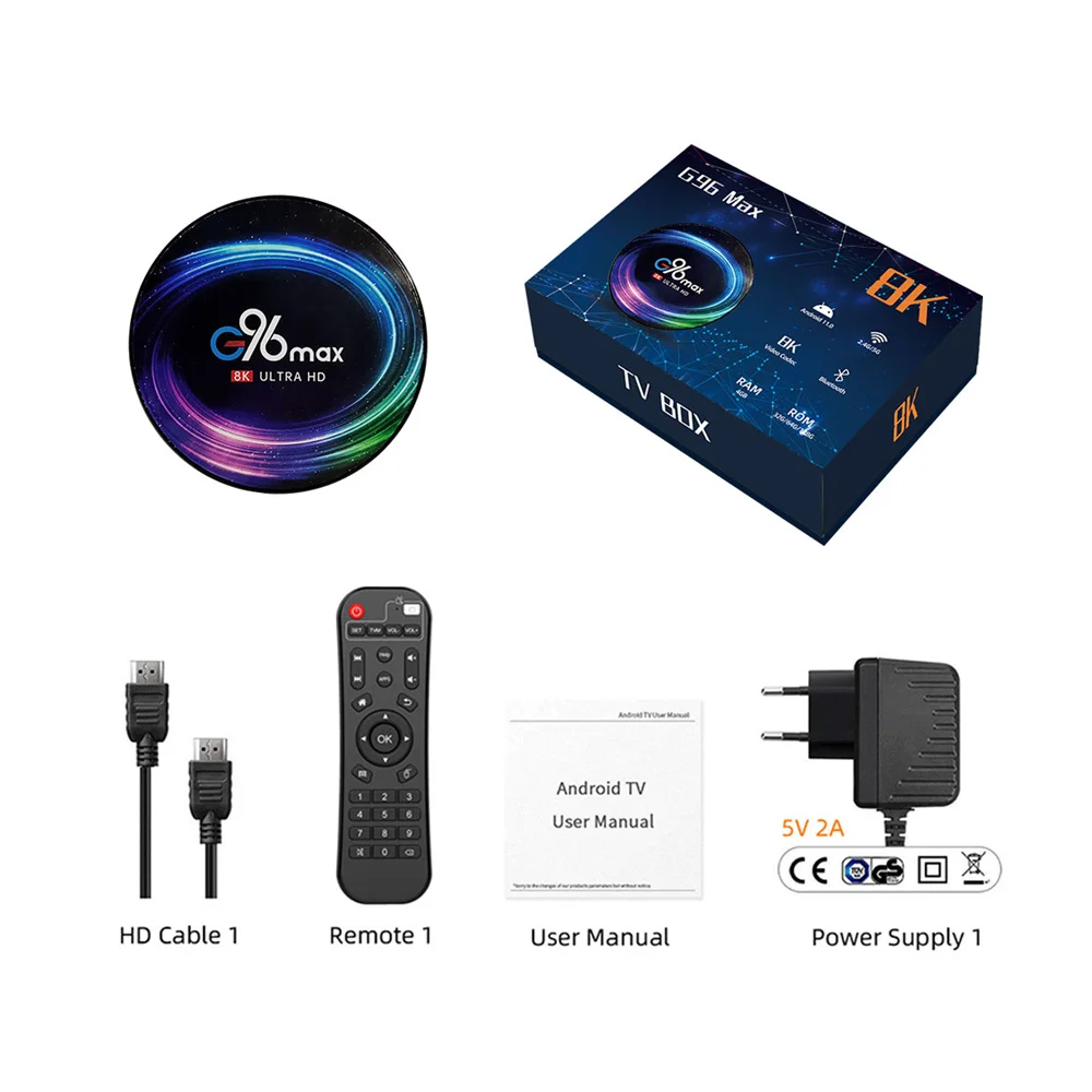 G96Max Смарт ТВ коробка Android 11,0 Max 4G + 128G Amlogic S905X4 Поддержка 8K Youtube Wi-Fi BT медиа плеер G96Max Iptv Set-Top box ТВ комплект компьютерной приставки к телевизору