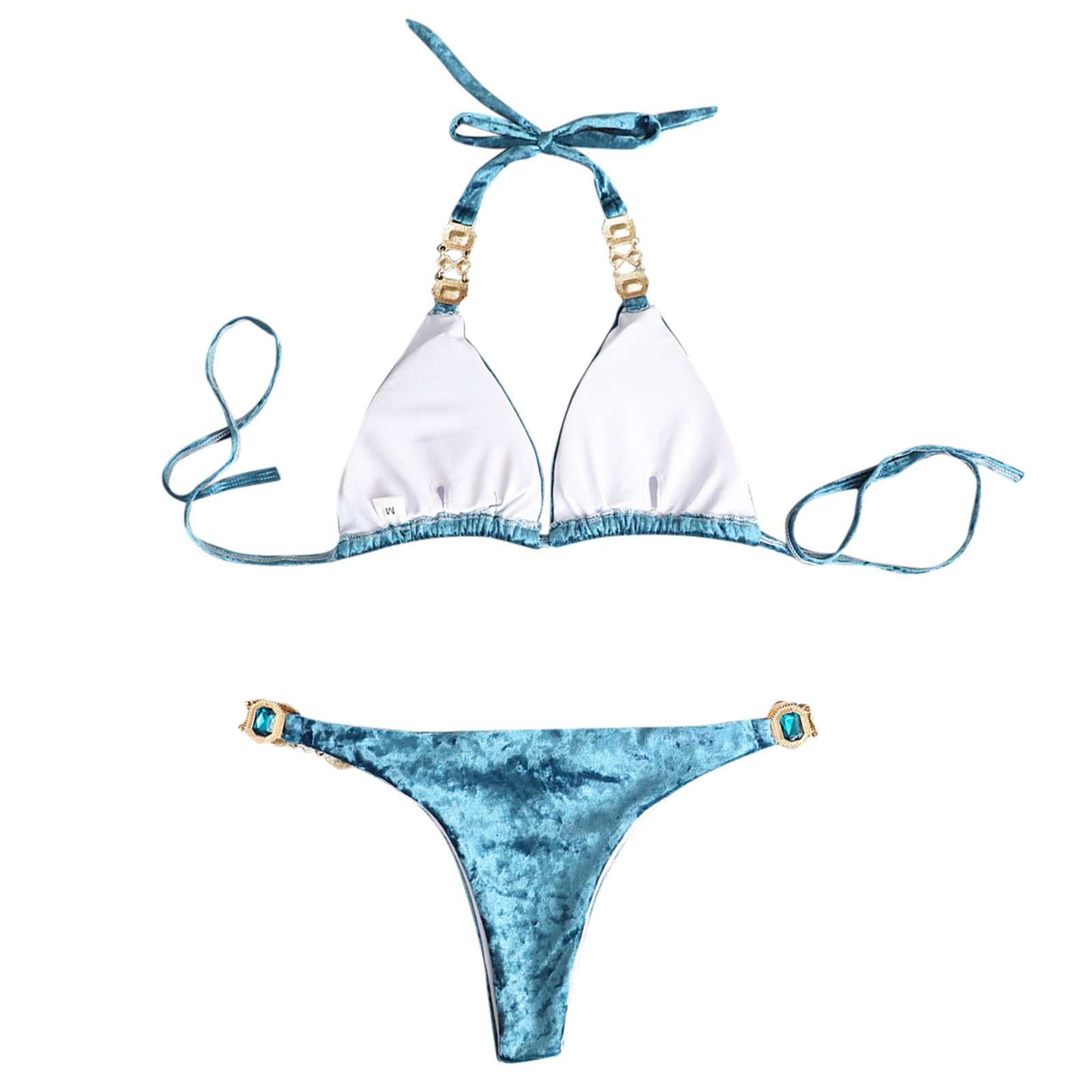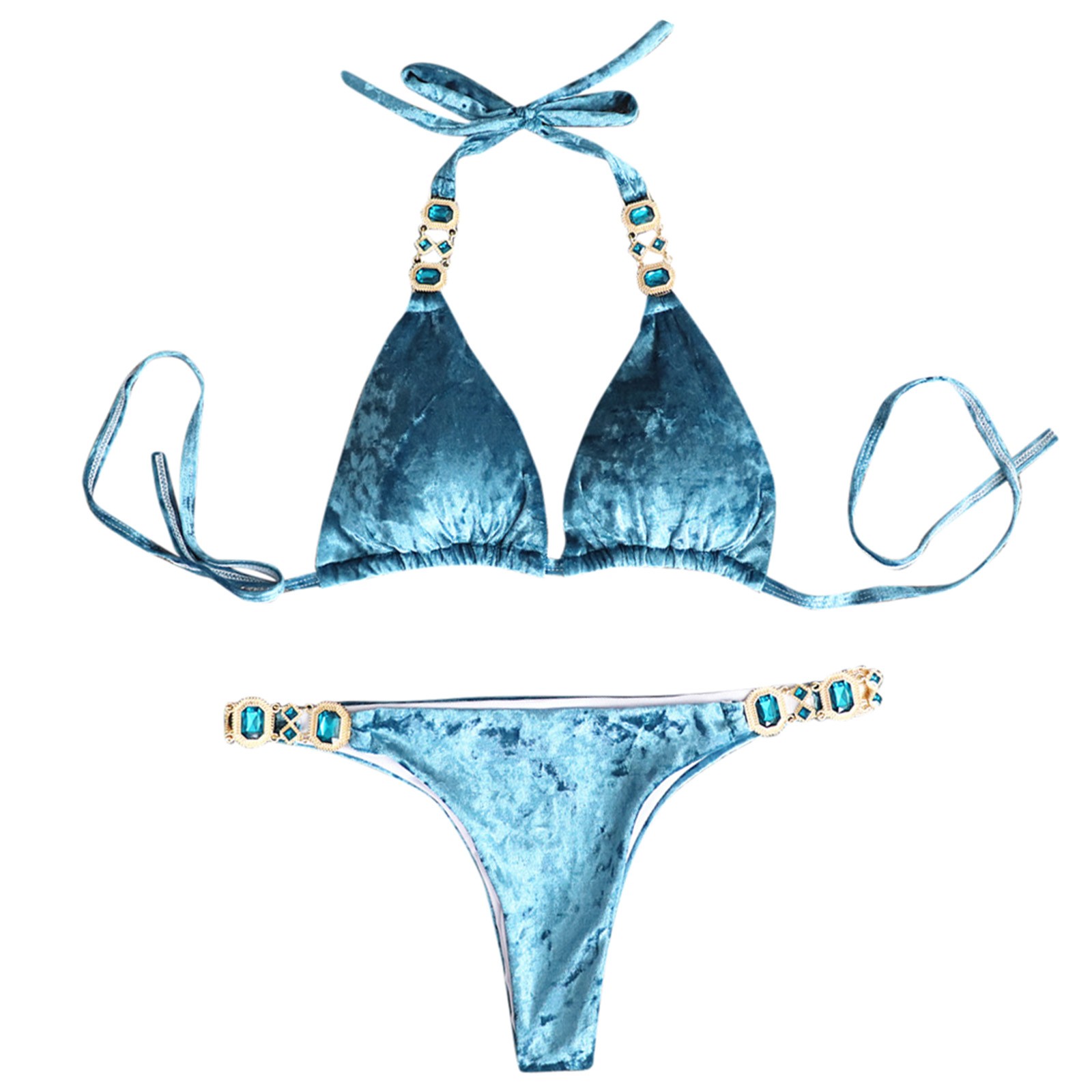 Модный женский купальник со стразами, бикини с высокой талией, бархатный женский раздельный купальник, сексуальное бикини с кристаллами, набор, пляжная одежда, бикини