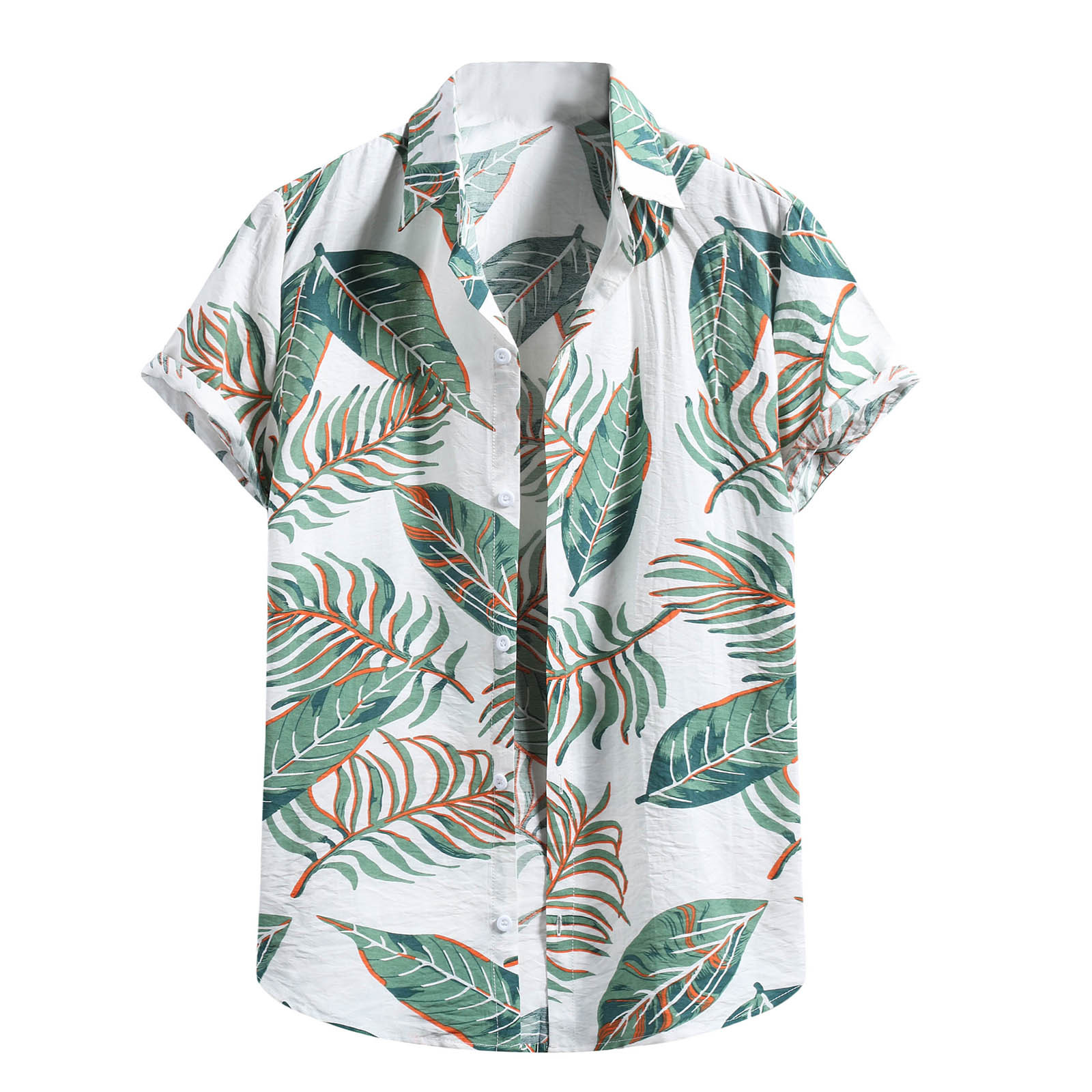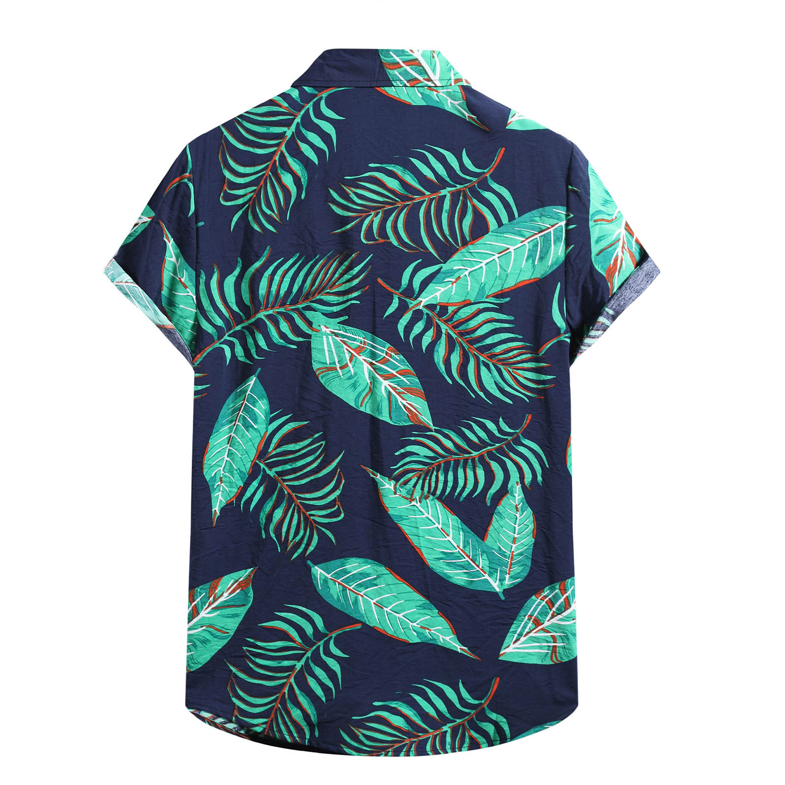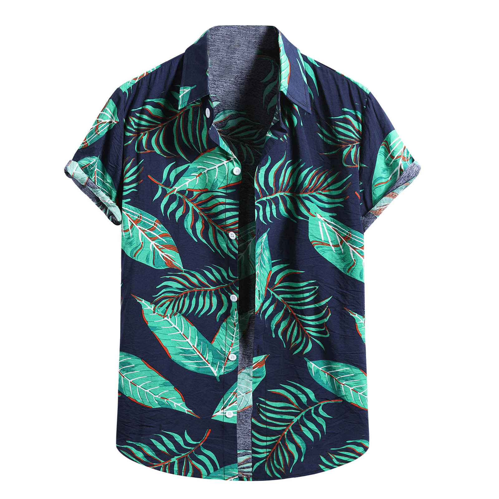 Мужская модная хлопковая льняная рубашка с коротким рукавом и принтом на пуговицах