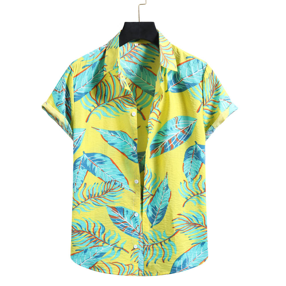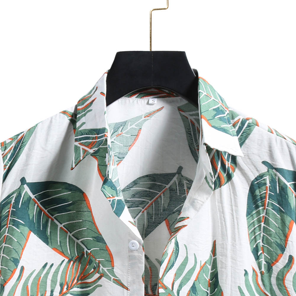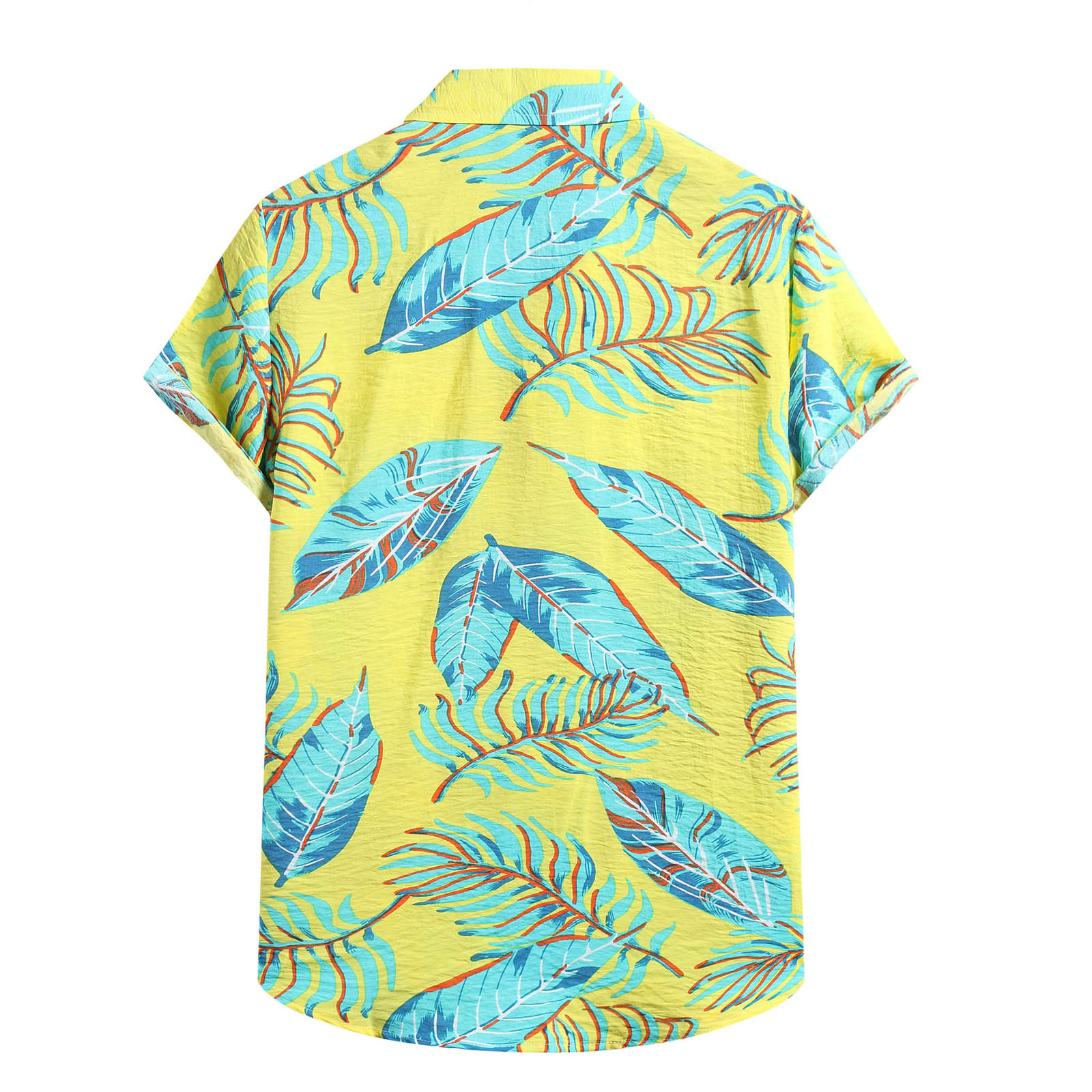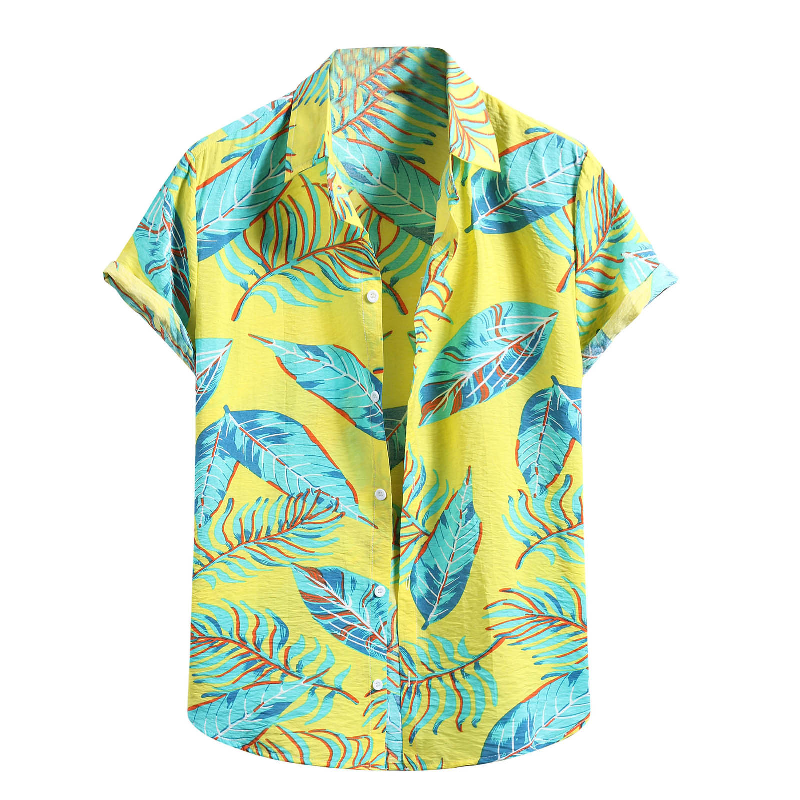 Мужская модная хлопковая льняная рубашка с коротким рукавом и принтом на пуговицах