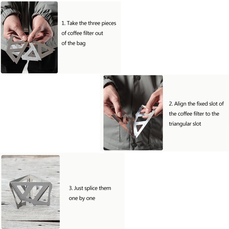 Простота в использовании: фильтр для кофе из нержавеющей стали очень быстро собирается, просто Защелкните три панели вместе, чем вы можете выдержать его на чашке для фильтрации, а после использования его также легко закрыть.