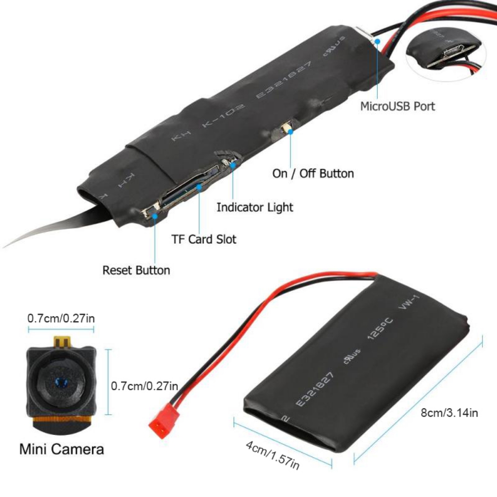 2. Мини-камера высокой четкости: оснащена ультра-мини-камерой высокой четкости, которая поддерживает разрешение видео и изображения до 1920*1080 пикселей. Функция H.264 (сжатый формат) обеспечивает отличную производительность и стабильность.