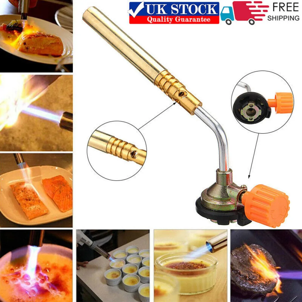 Material: Copper Color: orange + copper color Size: 14cm Temperature Resistance:1300℃ Features: Ideal for cooking, soldering, brazing, plumbing and so on long life, durable Application: Baking Tools Accessories Soldering copper pipes Loosening rusty nuts / bolts Thawing frozen metal pipes Removing paint or putty Working on crafts or hobbies Lighting charcoal Package include: ● 1 x gas torch
