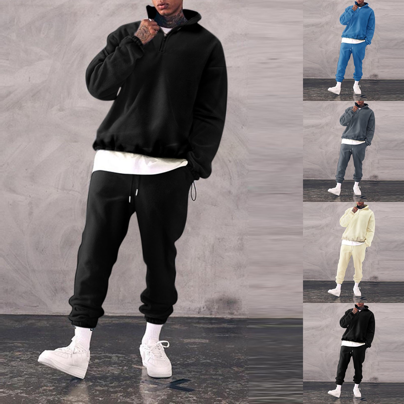 Зимний мужской спортивный костюм из 2 предметов, Плюшевые Спортивные костюмы, повседневный спортивный костюм для бега