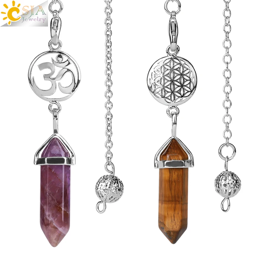 CSJA цветок жизни маятники для выдавливания натуральный камень кварц маятник рок кристалл аметисты шестиугольная подвеска эзотерика G884