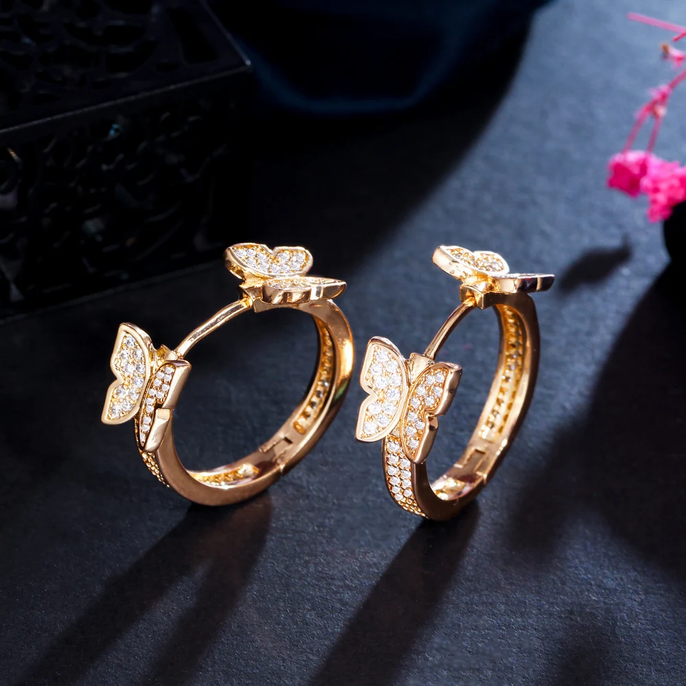CWWZircons элегантные блестящие круглые позолоченные серьги-кольца с кубическим цирконием для женщин CZ095