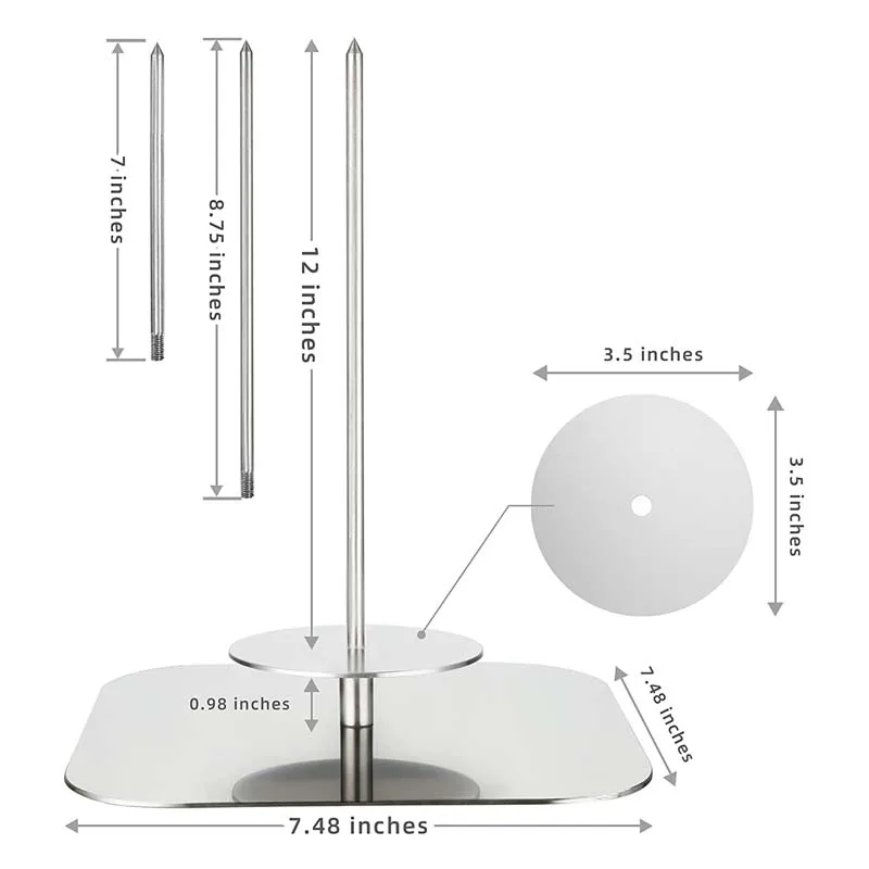 ✅Удобный для домашнего приготовления: в шашлык входит основание 7,5 дюйма х 7,5 дюйма (толщина 0, 08дюйма/2 мм), стержень 10 дюймов в длину и диаметр 0,25 дюйма и круглая платформа диаметром 3,5 дюйма. Легко использовать для духовки, гриля или барбекю.