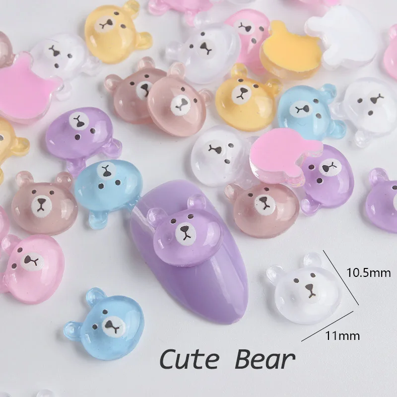 Милый желеобразный цветной резиновый медведь с плоской обратной стороной 10,5x11 мм, аксессуары для дизайна ногтей из горного хрусталя, камень для самостоятельного маникюра, Алмазное украшение