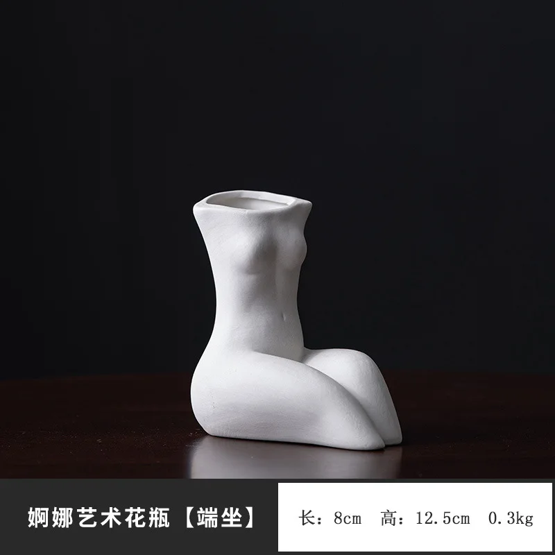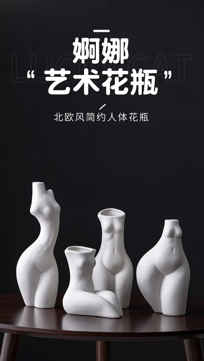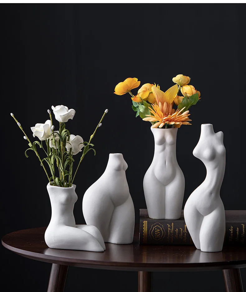 Home furnishings ins human body Plastic Art Vase Nordic home decoration ceramic vase sculpture white flower