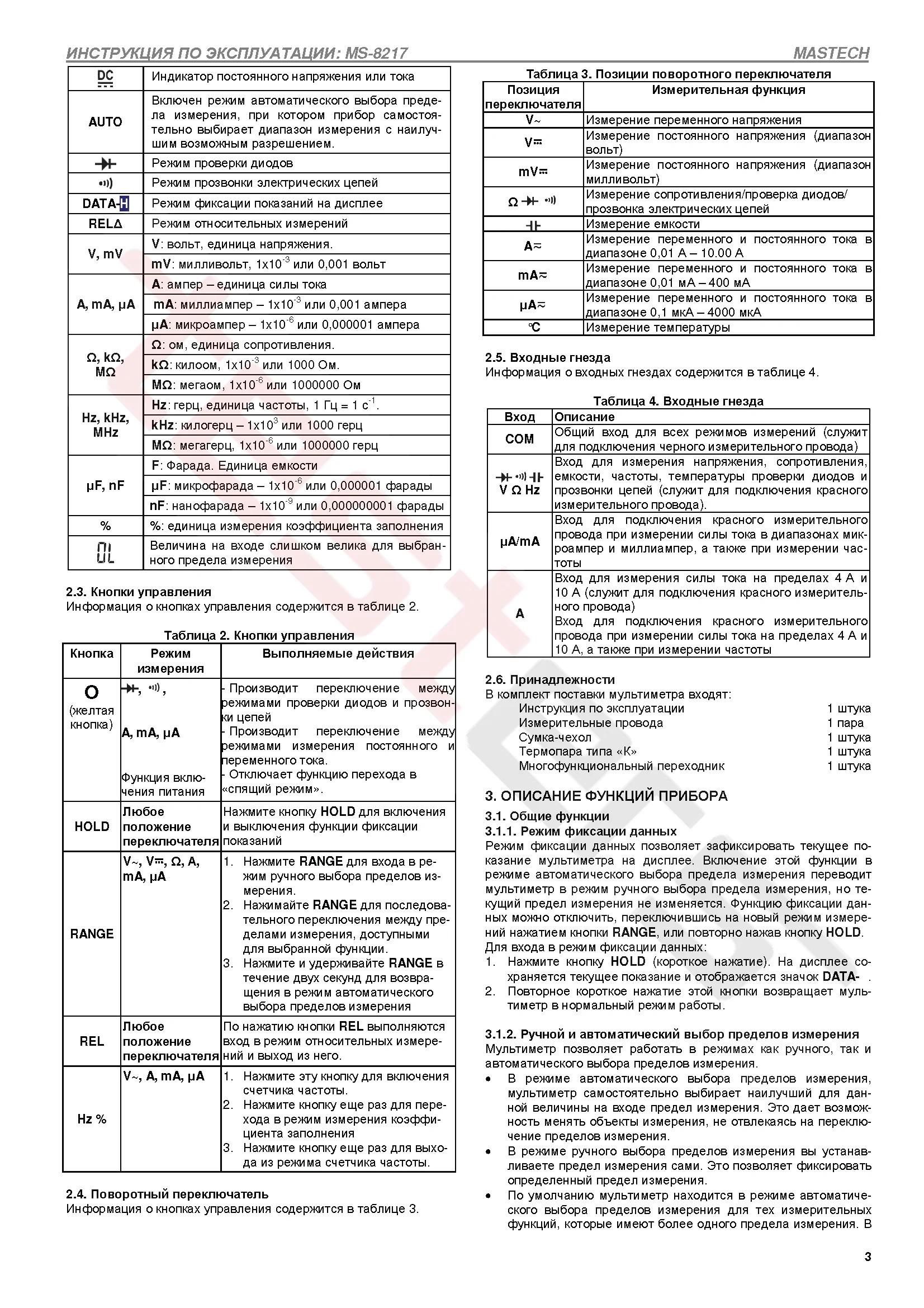 Предохранители: 400 мА/250В и 10 А/250 В