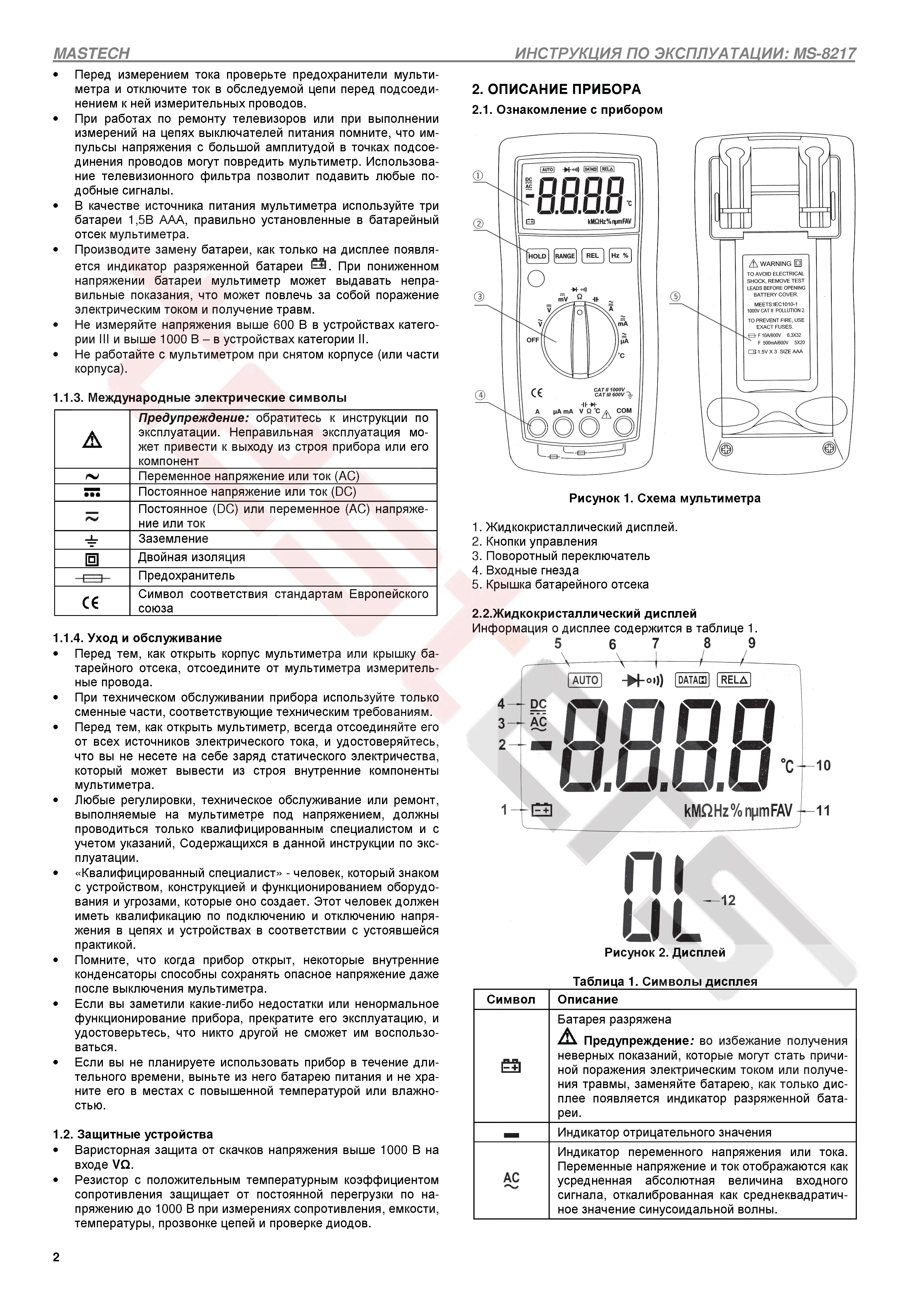 Класс безопасности: CAT.II 1000V CAT.III 600V