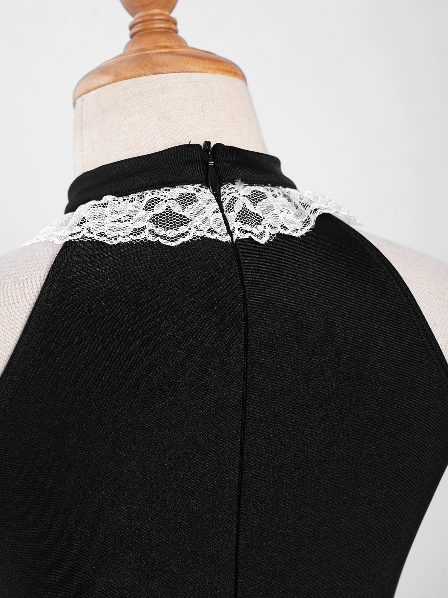 Платье без рукавов с круглым вырезом, невидимая застежка-молния сзади.