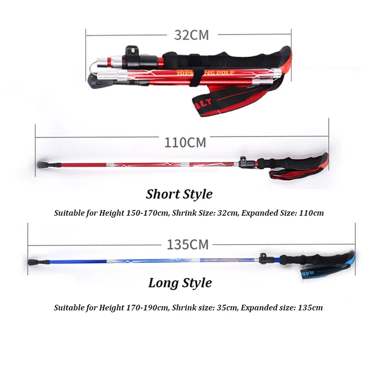 2 шт. складные трости сверхлегкие треккинговые палки походные путешествия Анти-шокТелескопический полюс для альпинизма, открытый костыль