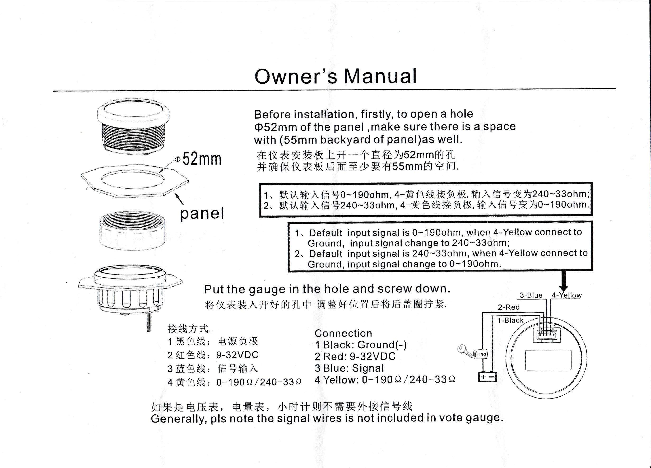 52 мм цифровой датчик уровня топлива 240 ~ 33 Ом 0 ~ 190 Ом индикатор уровня масляного бака 9 ~ 32 В для автомобиля, лодки, мотоцикла