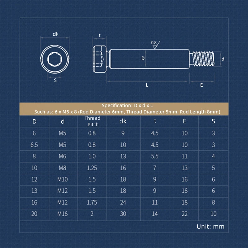 Такие как:6 x M5 x 8 (диаметр стержня 6 мм, диаметр резьбы 5 мм, длина стержня 8 мм)