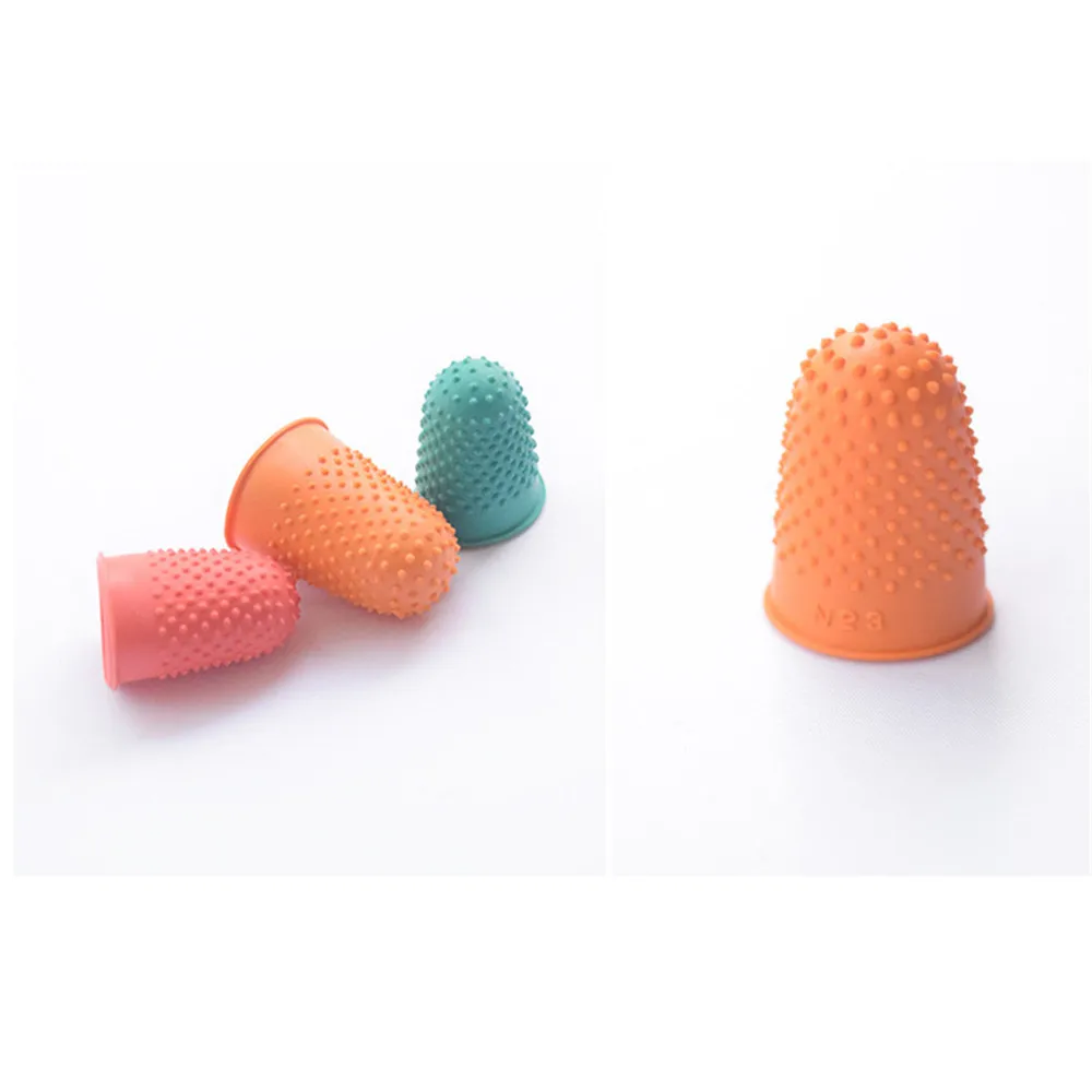 Specifications: Item type: Rubber thimble Material: Rubber Color/Size: Orange(3.3*2.5cm), Blue(3*2.3cm), Red(2.9*2.1cm), Green(2.8*2cm), Pink(2.4*1.9cm) Features: Slip-proof, fingertip protective 100% brand new and high quality. Made from pliable rubber. Available in 5 different sizes. For document counting, sewing tasks. The raised rim prevents the from slipping. Package Included: 5PCS Rubber thimble Note: 1. Due to the light and screen difference, the item's color may be slightly different from the pictures. 2. Please allow 0.5-2 cm differences due to manual measurement.