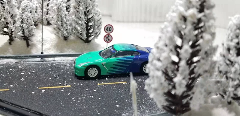 Название: 1/64 масштаб креативная ручная работа зимняя дорожная сцена акриловая витрина DIY коллекция для взрослых украшение подарок для мальчика игрушки