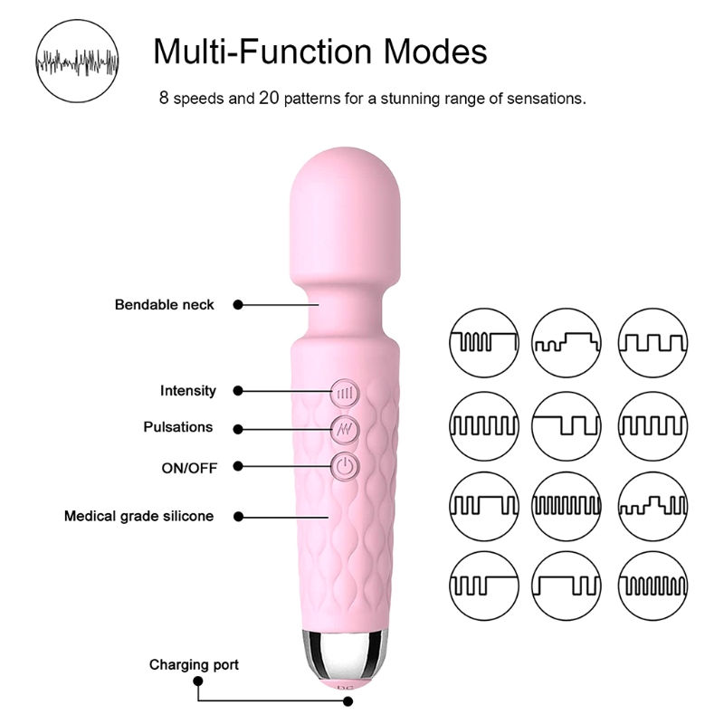 160 комбинаций вибрации, ручной массажер имеет 20 режимов вибрации и 8 скоростей, которые можно регулировать. Вы можете найти правильную амплитуду.