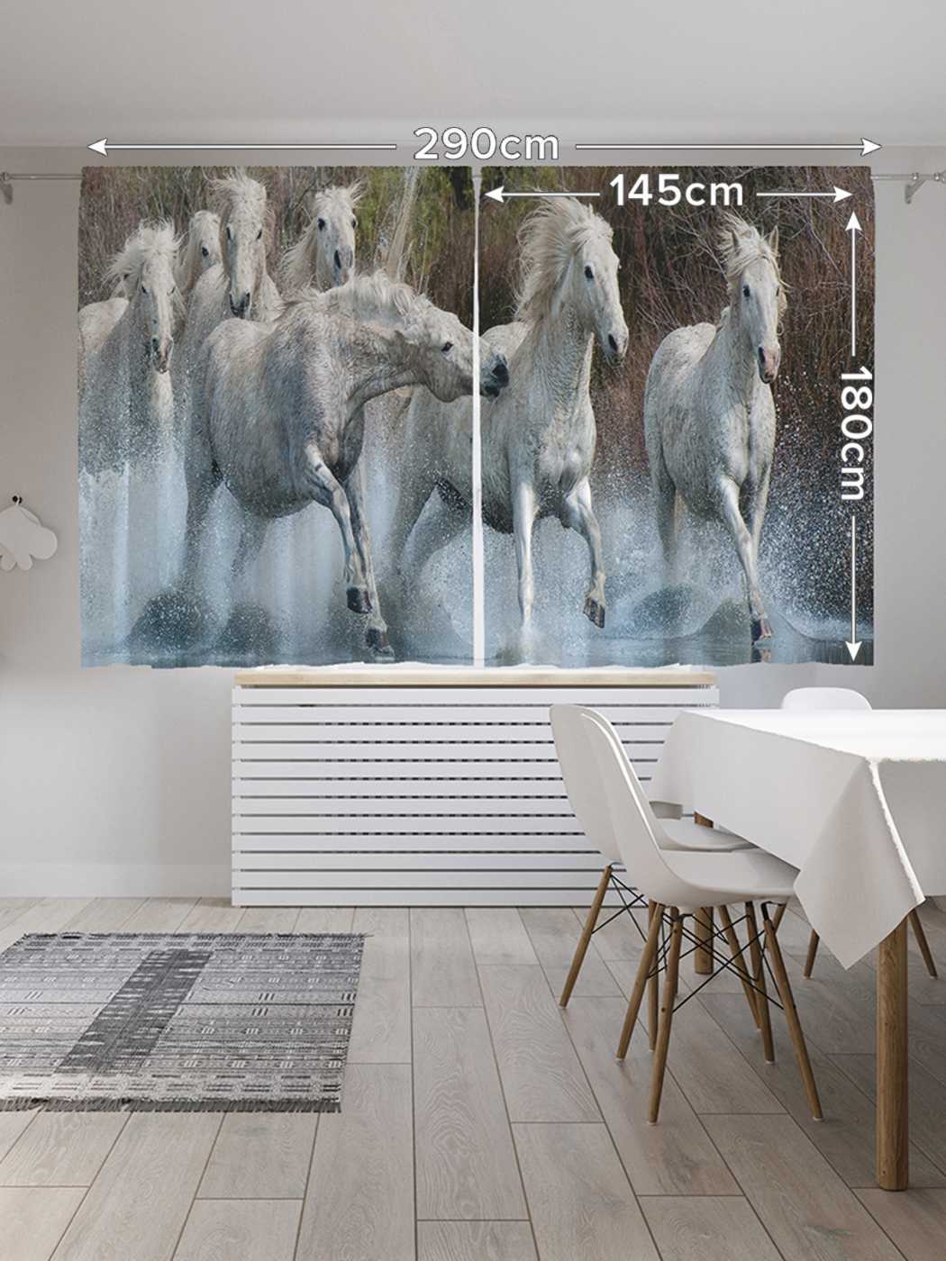 Украшенные разноцветными принтами фотошторы на шторной ленте будут стильно смотреться на кухне любой площади и дизайна. Они изготовлены из прочной и шелковистой на ощупь ткани сатена. При плотности 175 г/м2 этот материал практически не мнется, без проблем выдерживает многократные стирки и не усаживается. Изделие состоит из двух полотен размером 145х180 см, которые уже подшиты шторной лентой и комплектуются 50 карнизными крючками. Эти оригинальные по расцветке короткие шторы на кухню пропускают около 30% света, поэтому отлично выглядят днем, и не слишком прозрачны в вечернее время при включенном освещении внутри дома. При заказе следует учитывать, что допуск размеров полотен составляет не более 5 см, а яркость рисунка на шторах может несколько отличаться от изображения на экране.