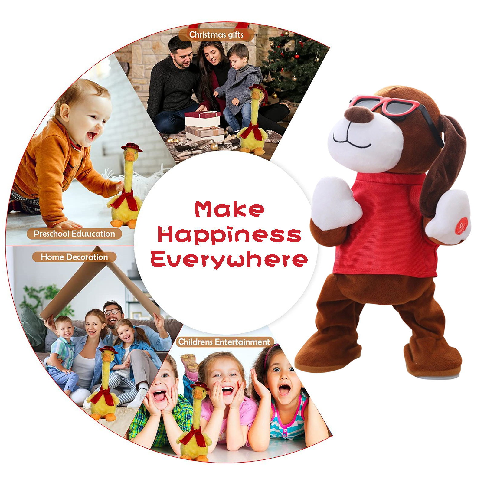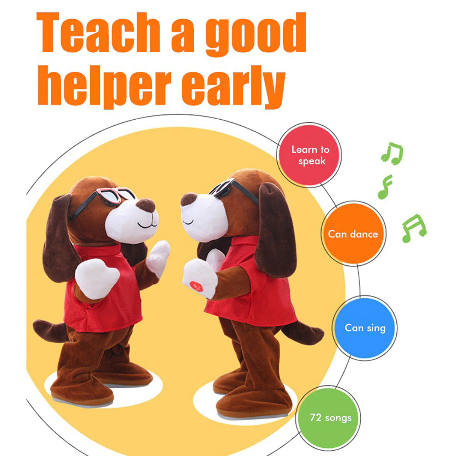 3. Многофункциональность: Эта плюшевая игрушечная собака может записывать и повторять то, что вы говорите, танцует, поет и привлекает внимание детей, что очень хорошо подходит для раннего образования.