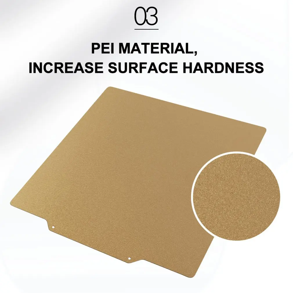 1. Покрытие PEI: он может хорошо прилипать к различным печатным материалам, особенно PLA и ABS. Устойчив к высокой температуре 260c.