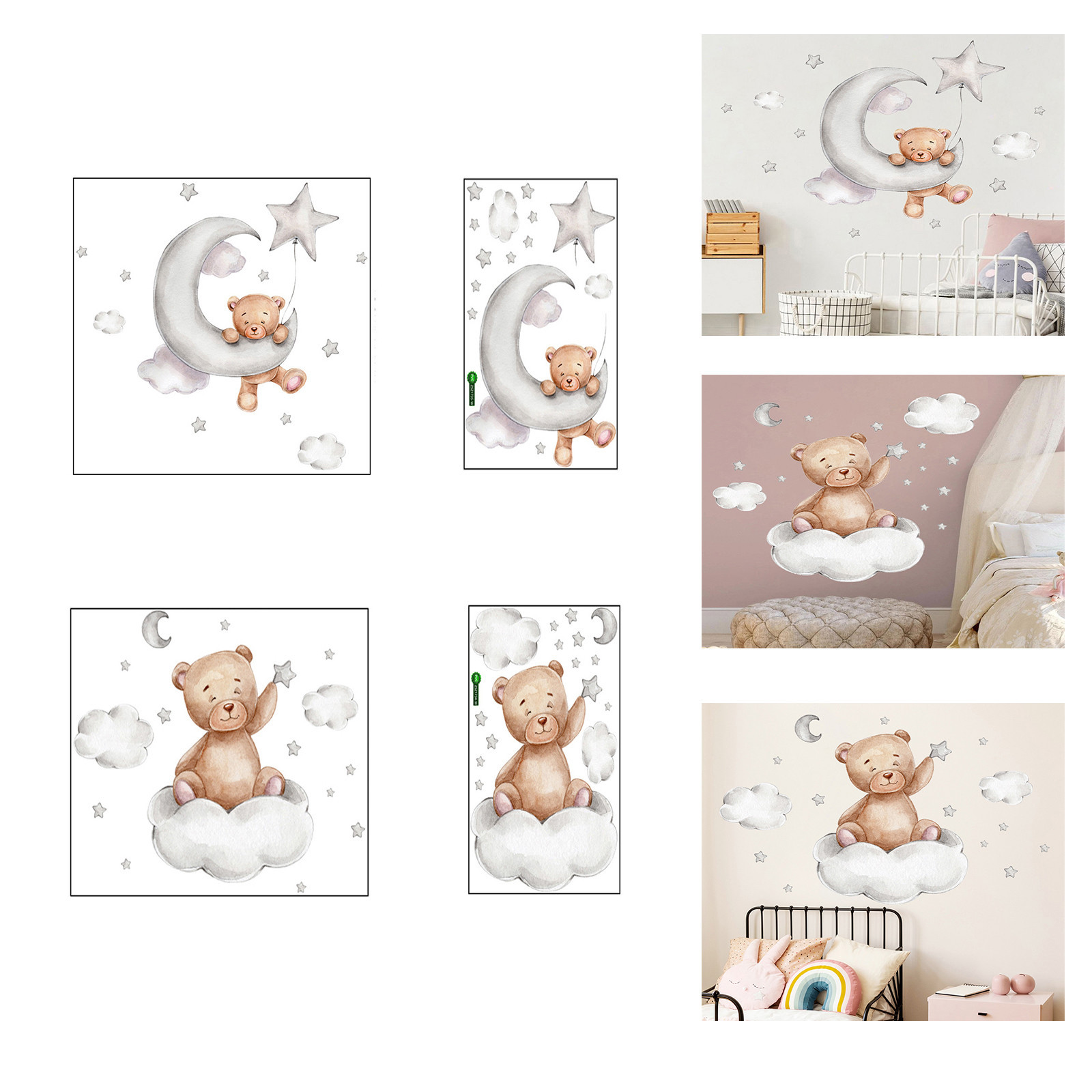 Наклейки на стену с изображением медведя, Луны, облаков, звезд, героев мультфильмов, спальни, детской комнаты, декорации на стену