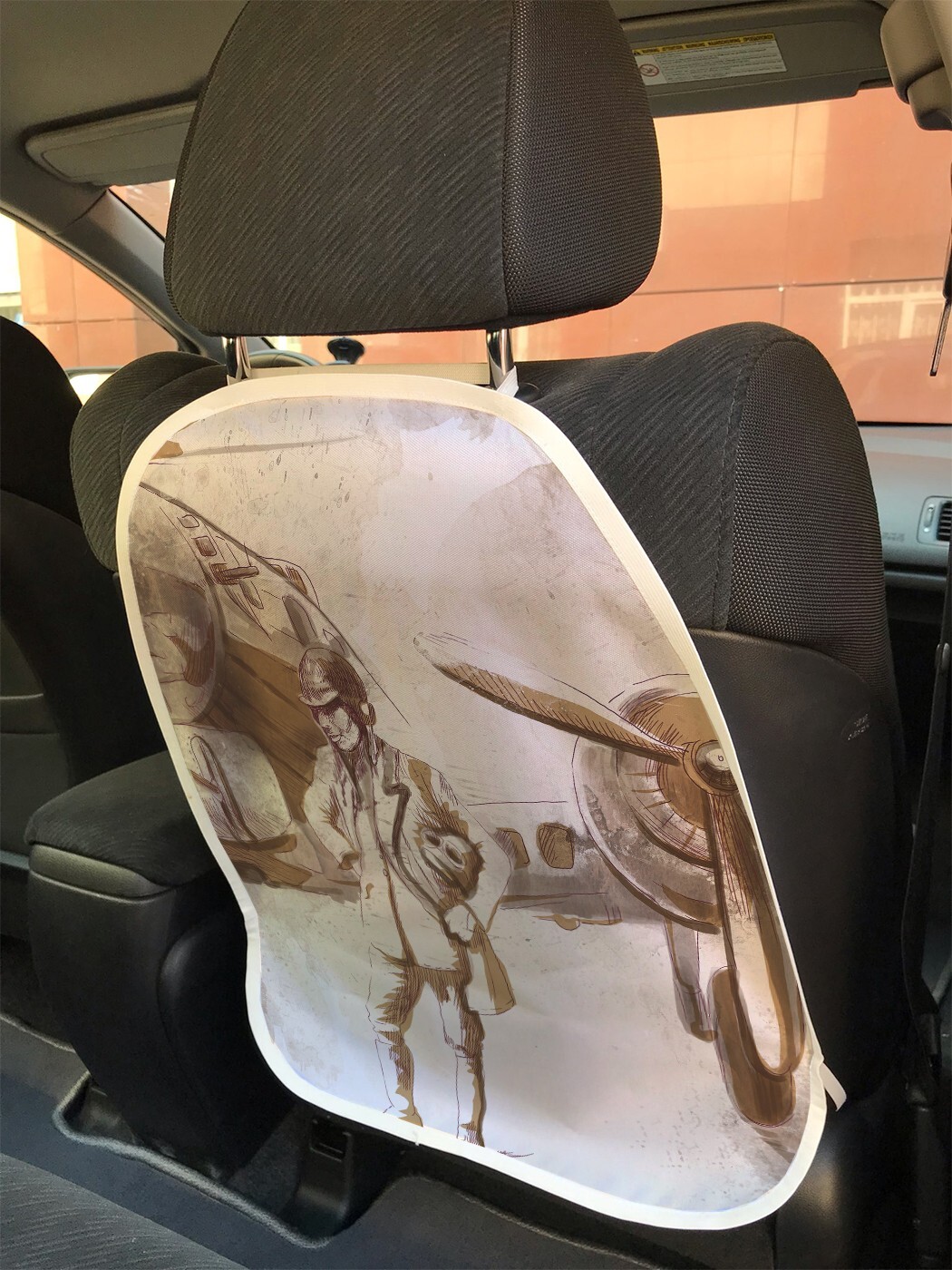 При перевозке в автомобиле малышей приходится фиксировать в детских креслах, где они остаются без непосредственного внимания родителей. Чтобы развлечь себя, многие дети принимаются пинать ногами расположенное перед собой водительское или пассажирское кресло. Это не только отвлекает водителя от дороги, но и постепенно портит обивку кресел переднего ряда. Декоративные защитные накидки на сиденья, украшенные принтами с детскими изображениями, способны переключить внимание ребенка на себя, и занять его разглядыванием яркой сюжетной картинки на все время дороги. Универсальная защитная накидка на спинку сиденья пошита из плотной и обработанной водоотталкивающей пропиткой ткани «Оксфорд». Обивка кресел останется целой и чистой, а ребенок будет спокойнее вести себя в дороге и не докучать взрослым.