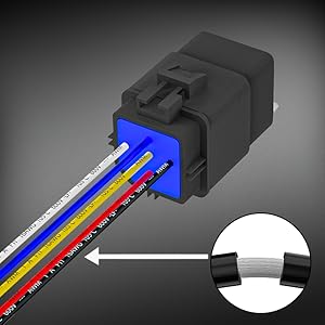 Проволочный Калибр: это 5 pin реле 12v включает в себя два различных Калибр проводов для переключателей и устройств, а также 14 AWG провода для устройств (красную 30 ', ' 87 нет» и «желтую 87a NC») И 16 AWG проводов для выключателей («черный 85» и «белый 86»).