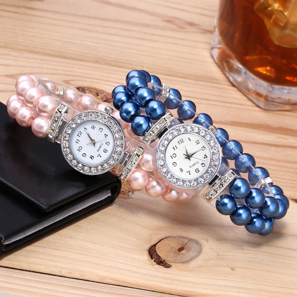 Модные женские повседневные кварцевые наручные часы с ремешком и жемчугом